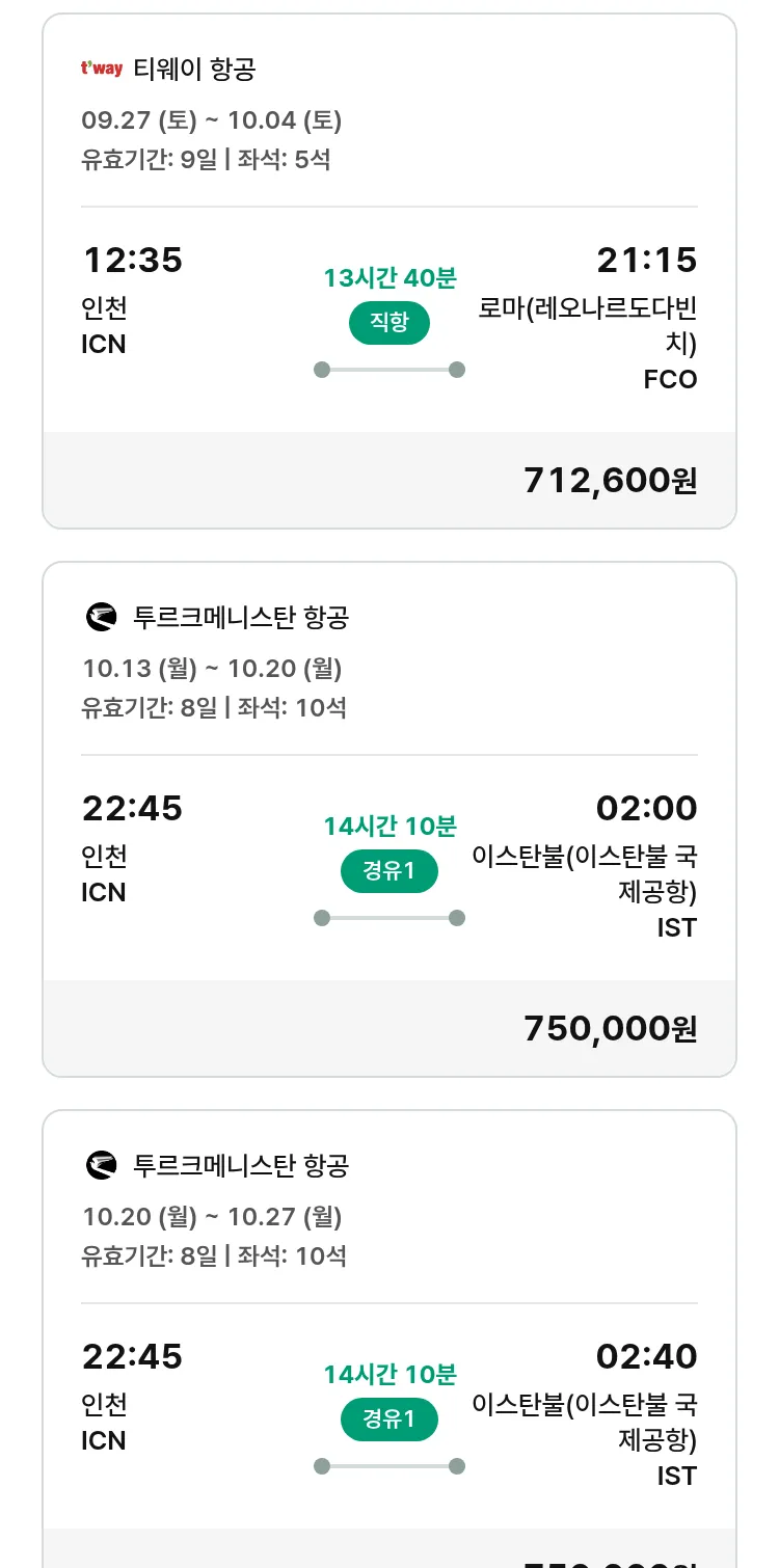 (9월 24일(수)) 모두투어 유럽 특가 항공권