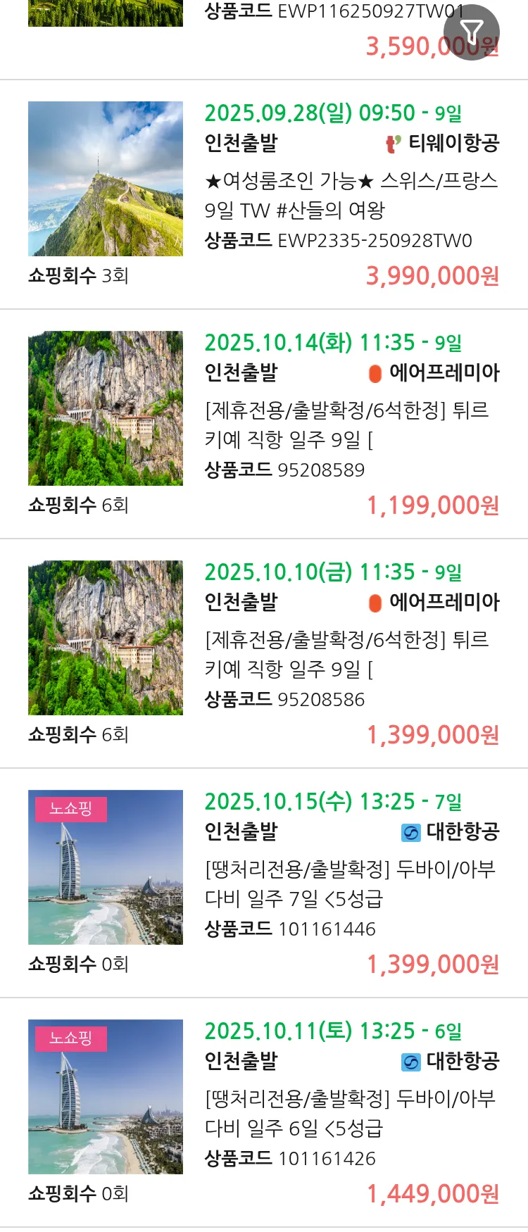 (9월 24일(수)) 땡처리 99.9% 확정 패키지
