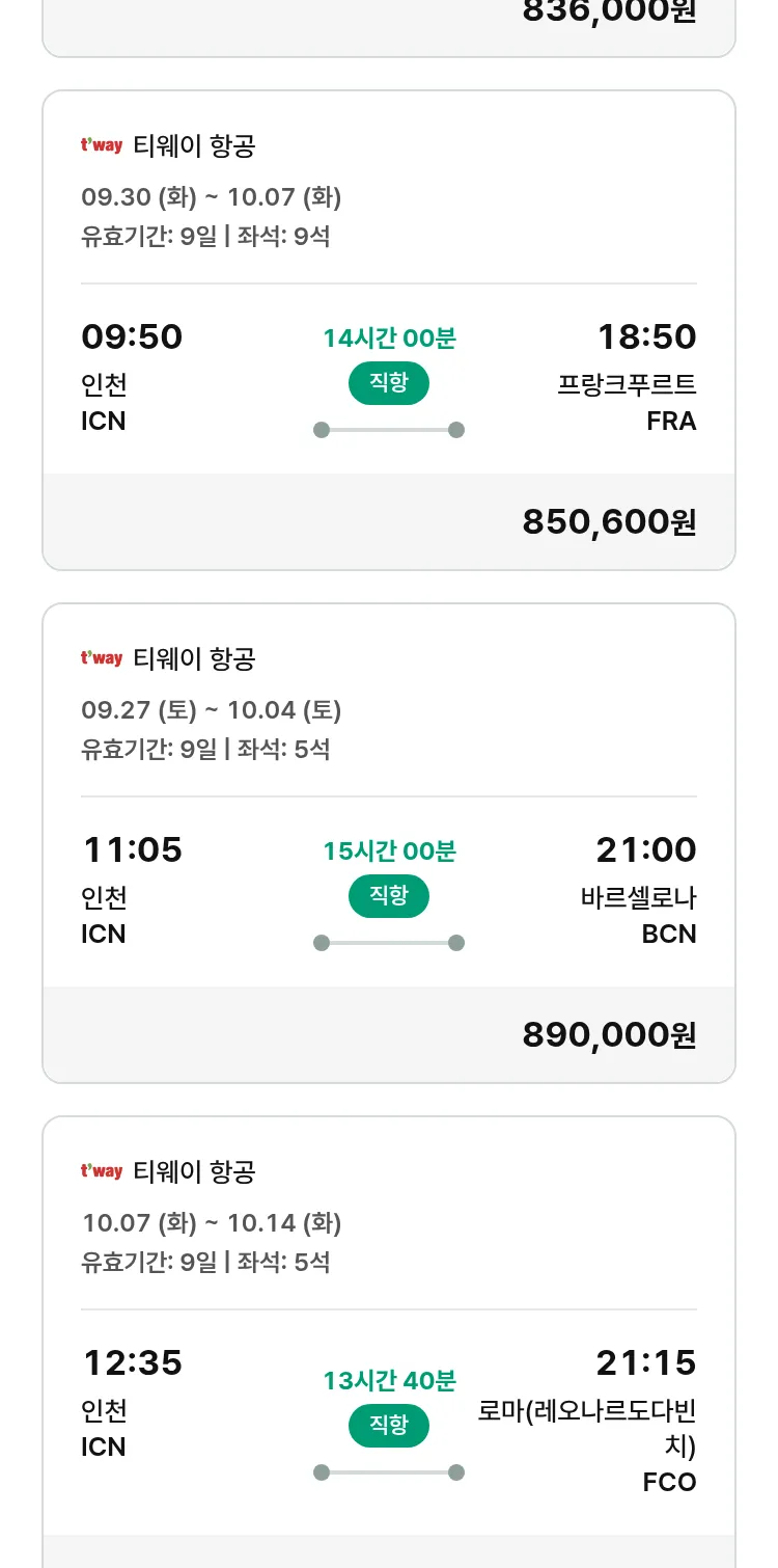 (9월 24일(수)) 땡처리 유럽 긴급 패키지