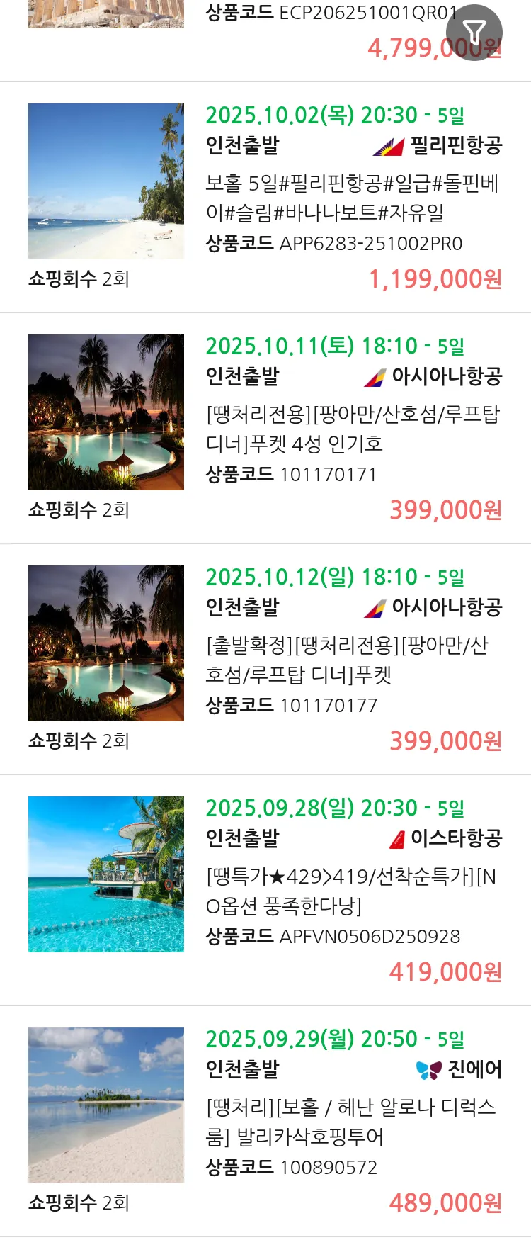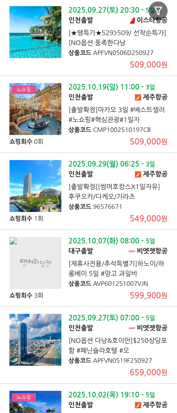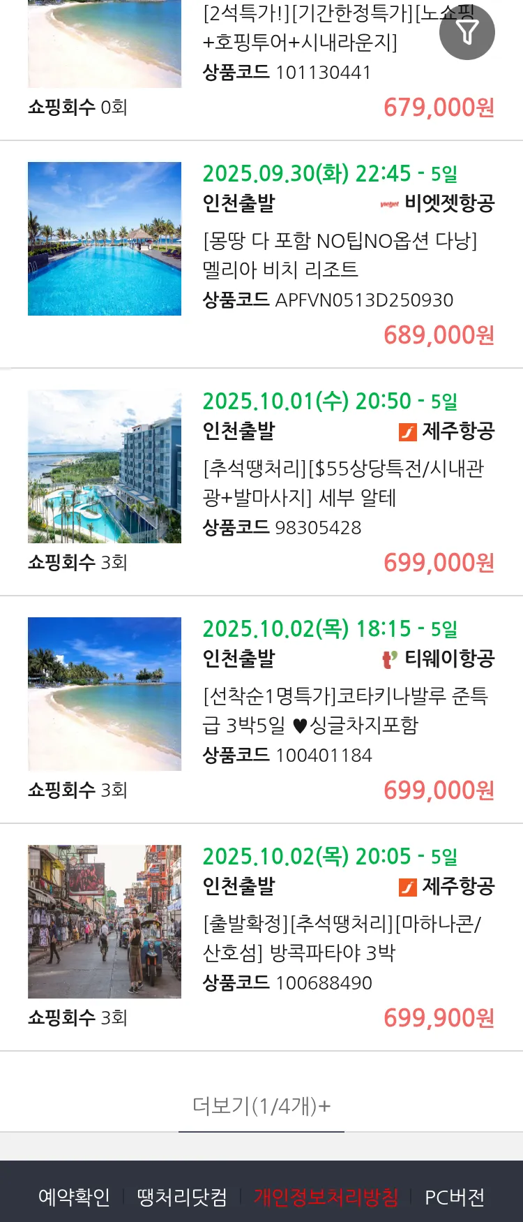 (9월 25일(목)) 땡처리 99.9% 확정 패키지