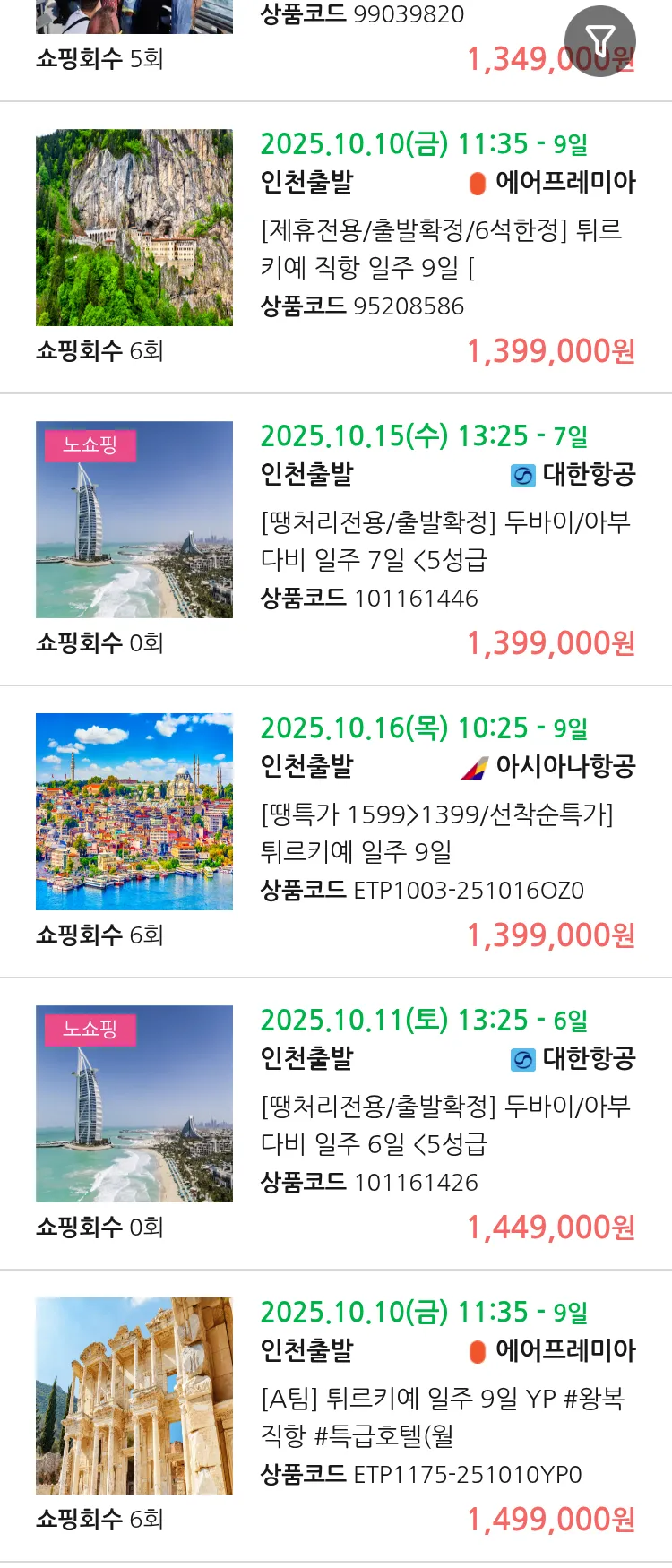 (9월 25일(목)) 땡처리 99.9% 확정 패키지