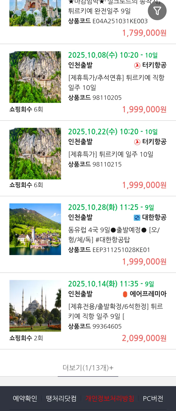 (9월 25일(목)) 땡처리 연휴 패키지 패키지