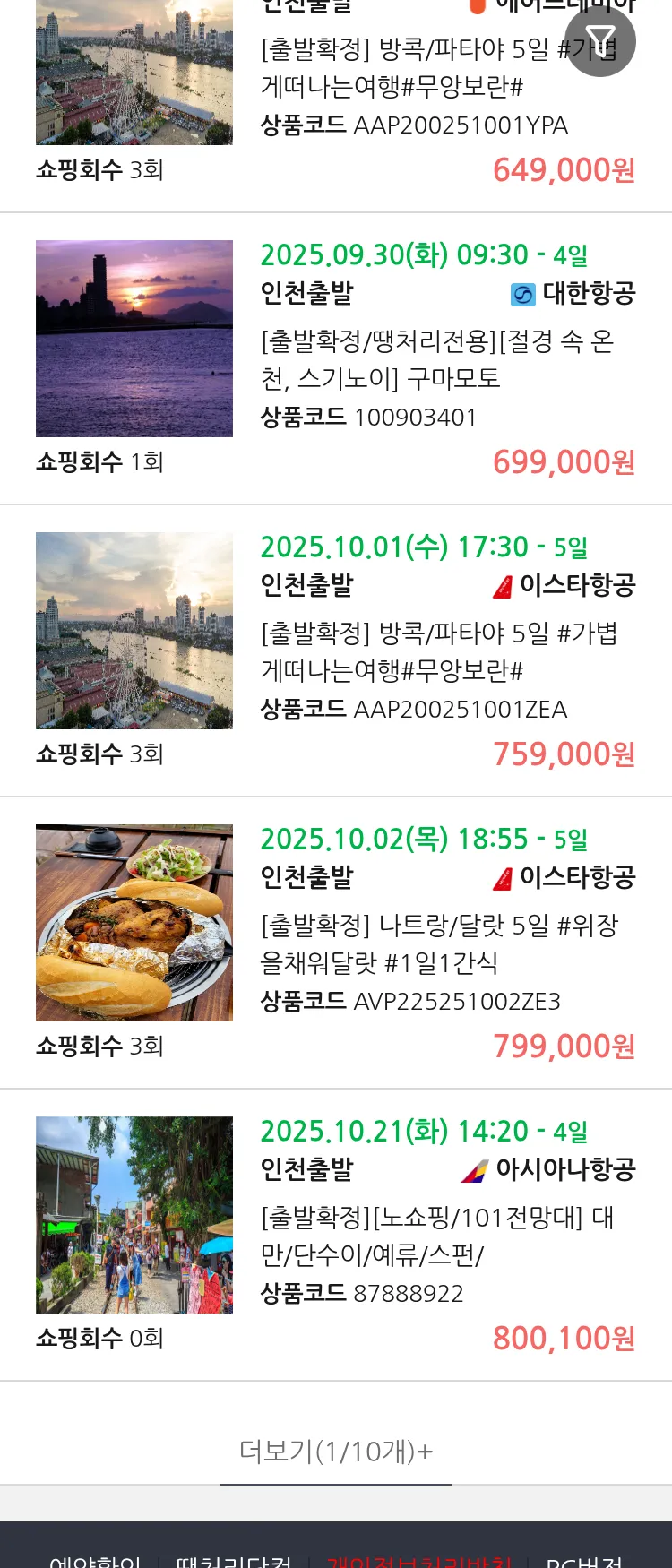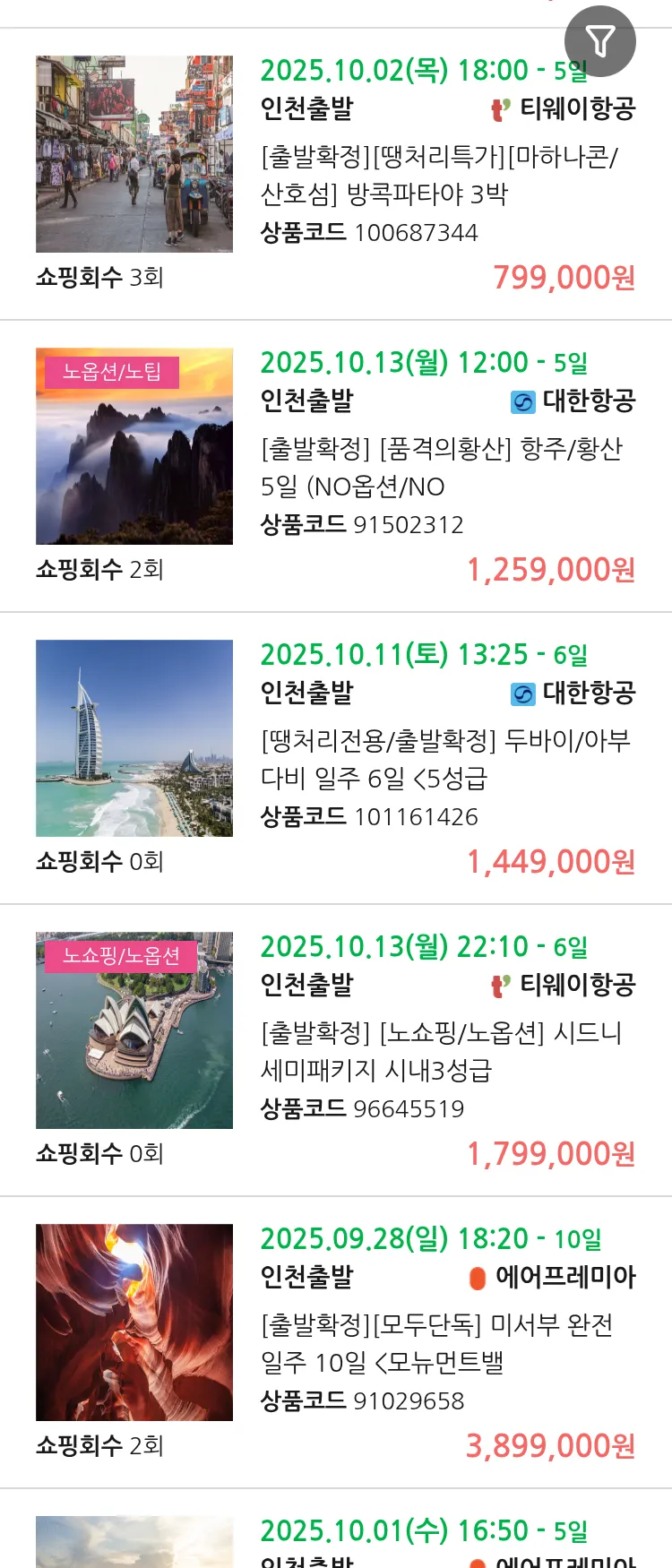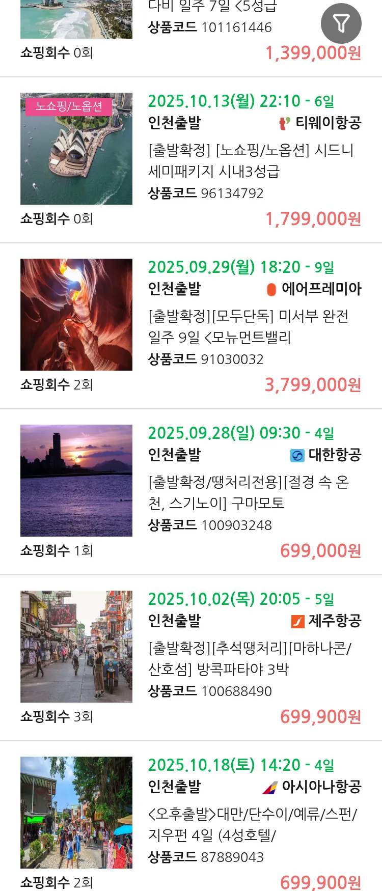 (9월 25일(목)) 땡처리 99.9% 확정 패키지