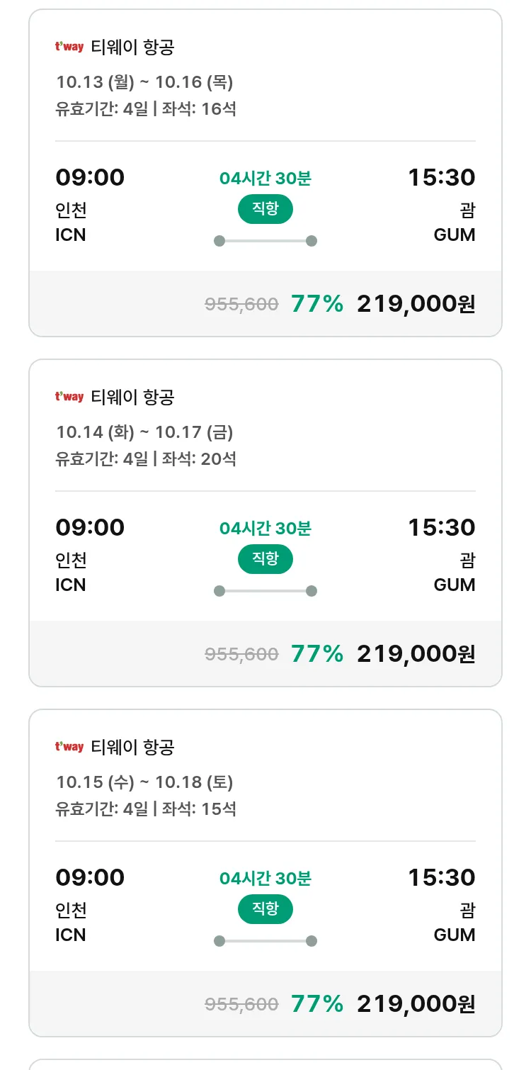 (9월 25일(목)) 땡처리 99.9% 확정 패키지