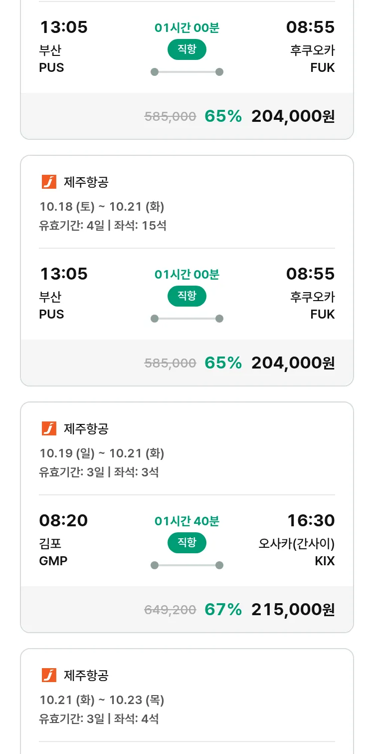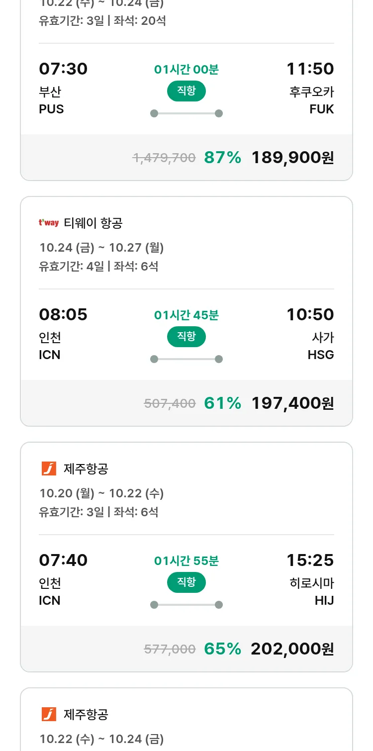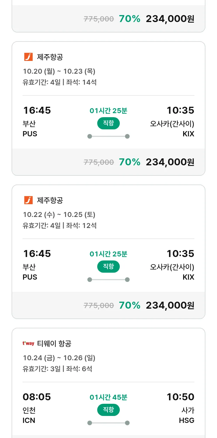 (9월 25일(목)) 땡처리 특가 항공권