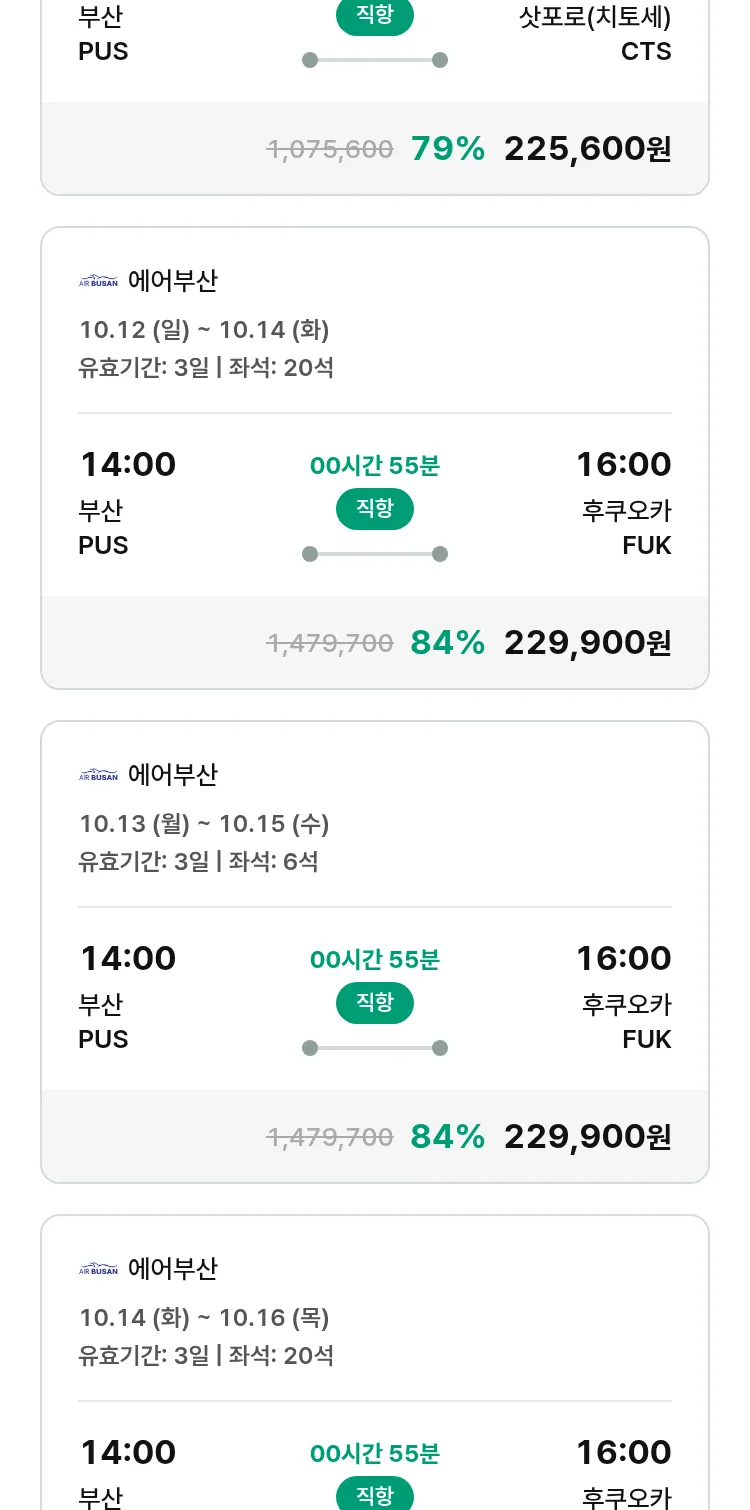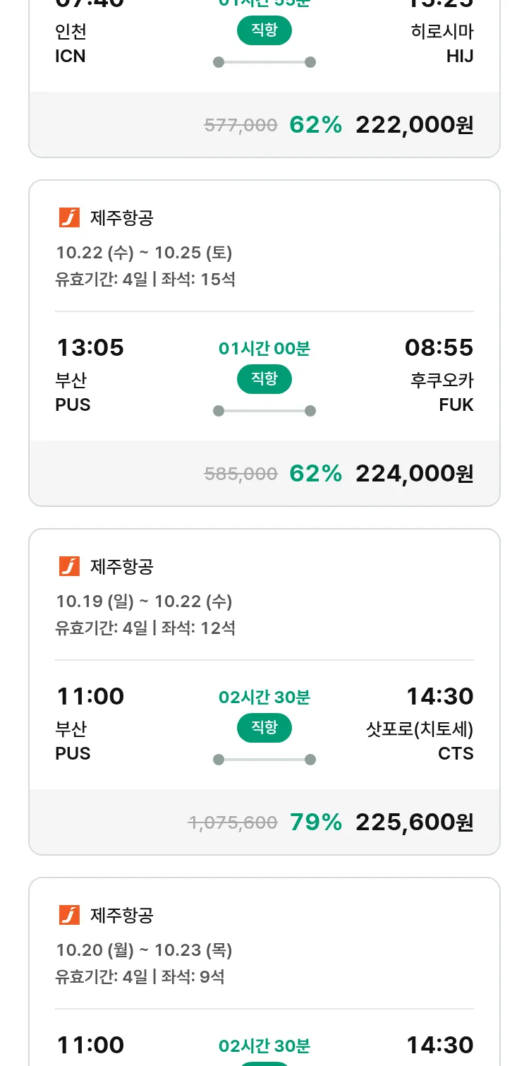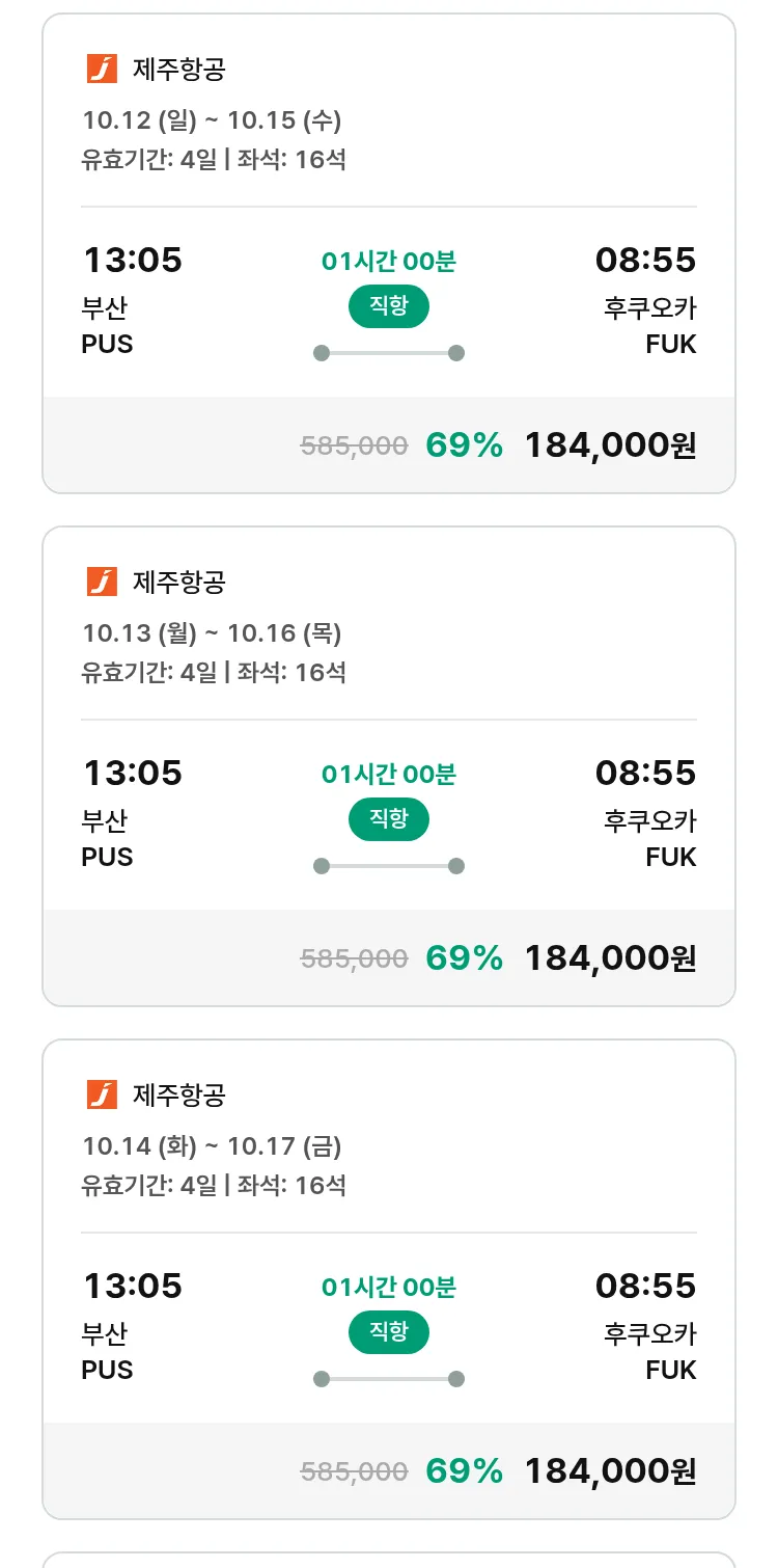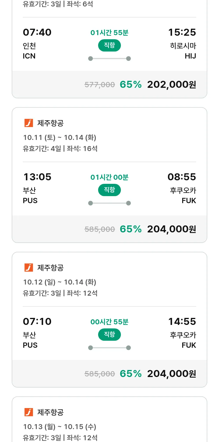 (9월 25일(목)) 땡처리 특가 항공권