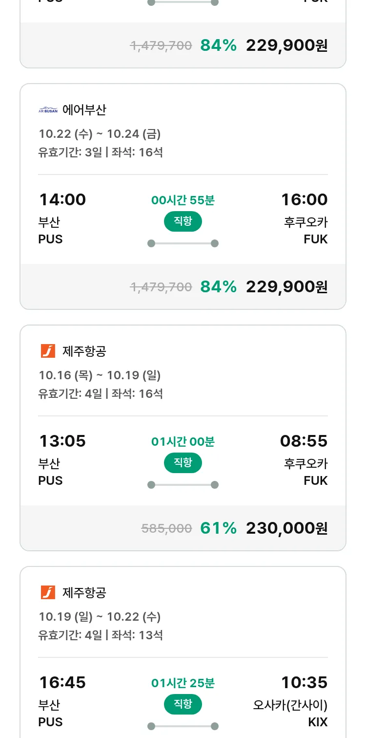 (9월 26일(금)) 땡처리 특가 항공권