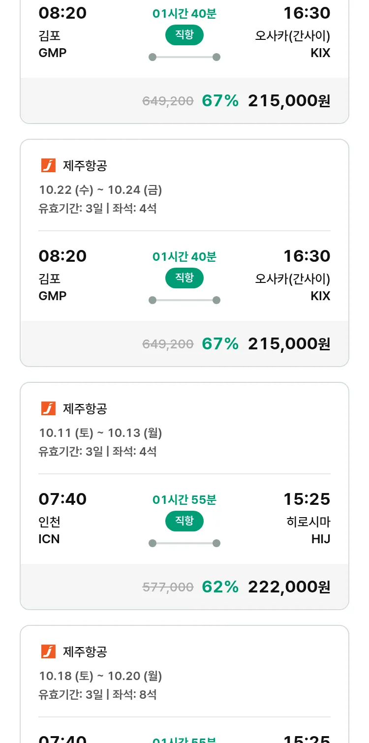 (9월 25일(목)) 모두투어 일본 특가 항공권