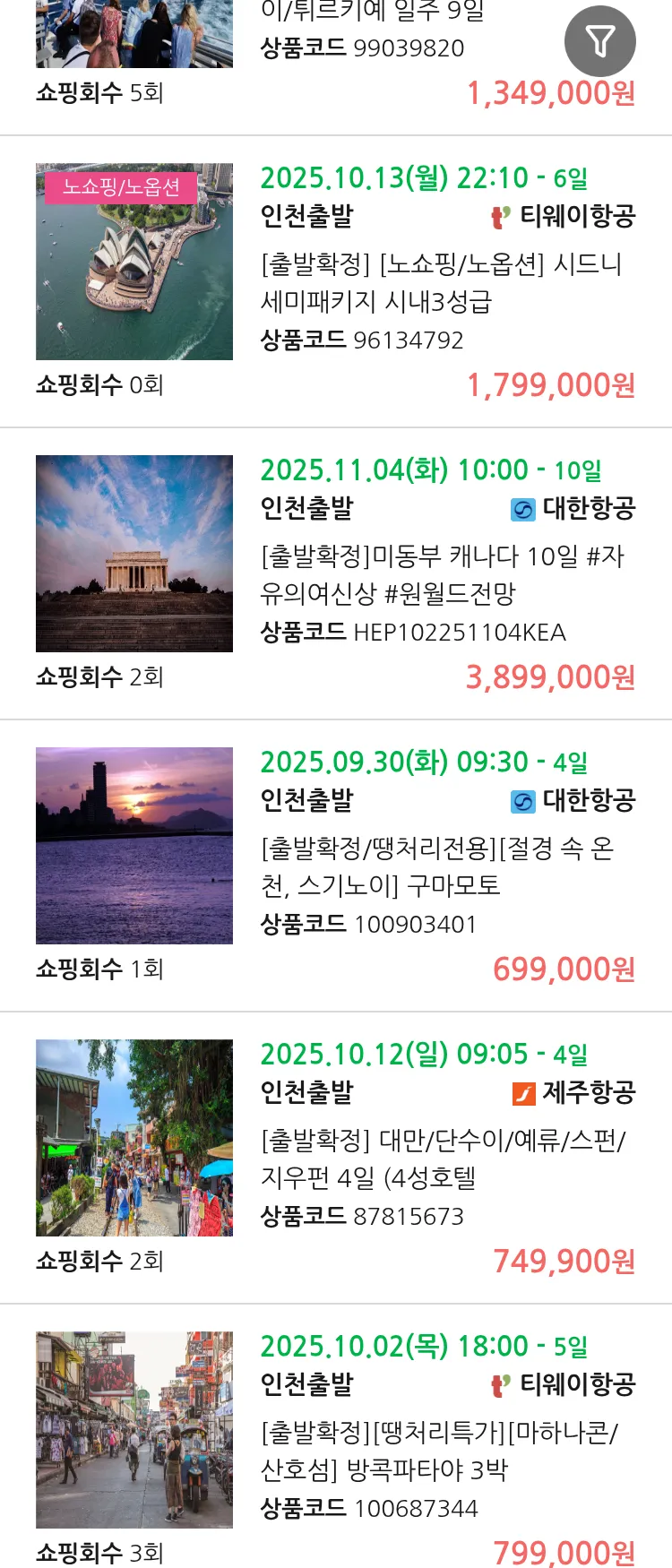 (9월 25일(목)) 땡처리 연휴 패키지 패키지