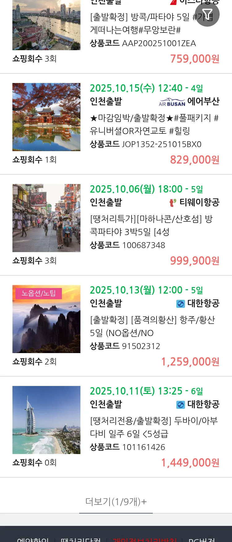 (9월 25일(목)) 땡처리 99.9% 확정 패키지