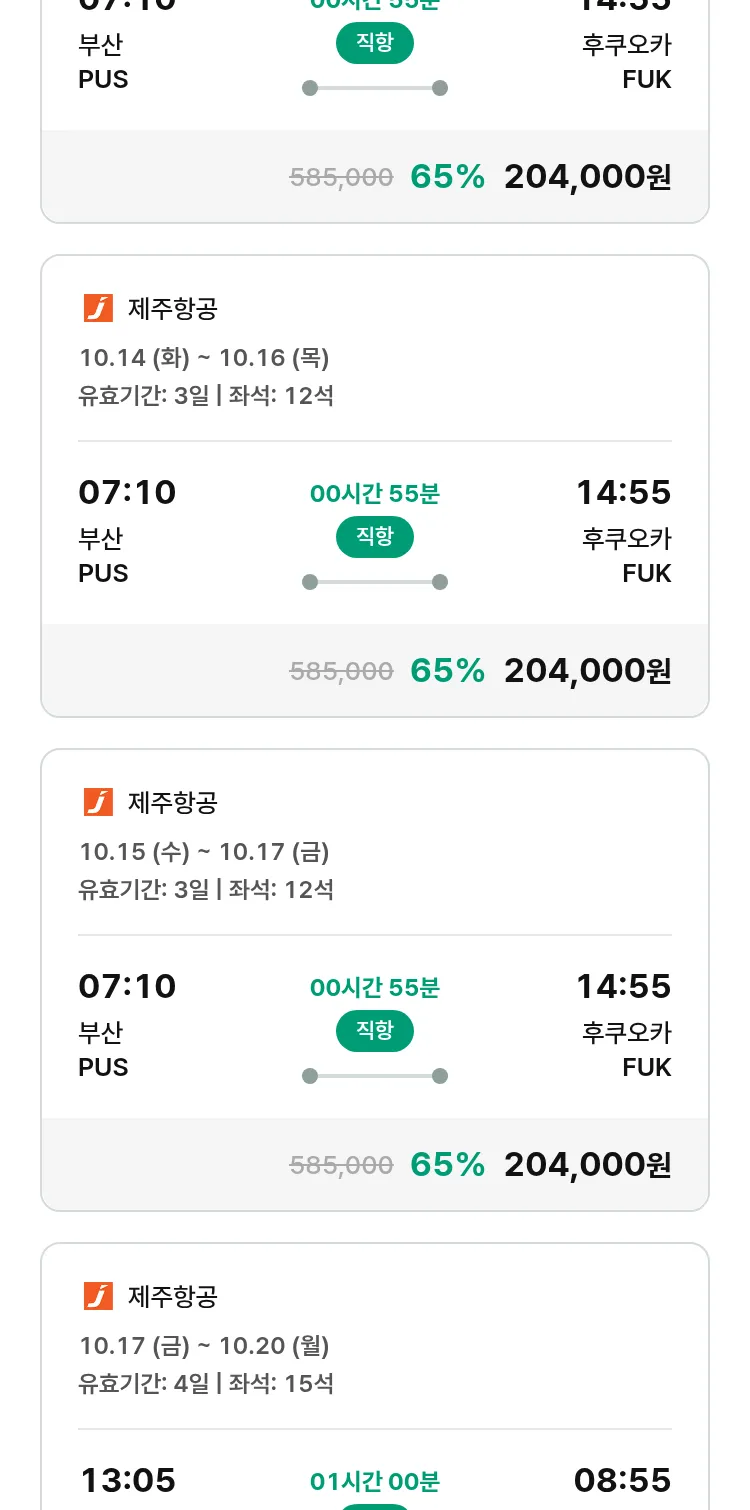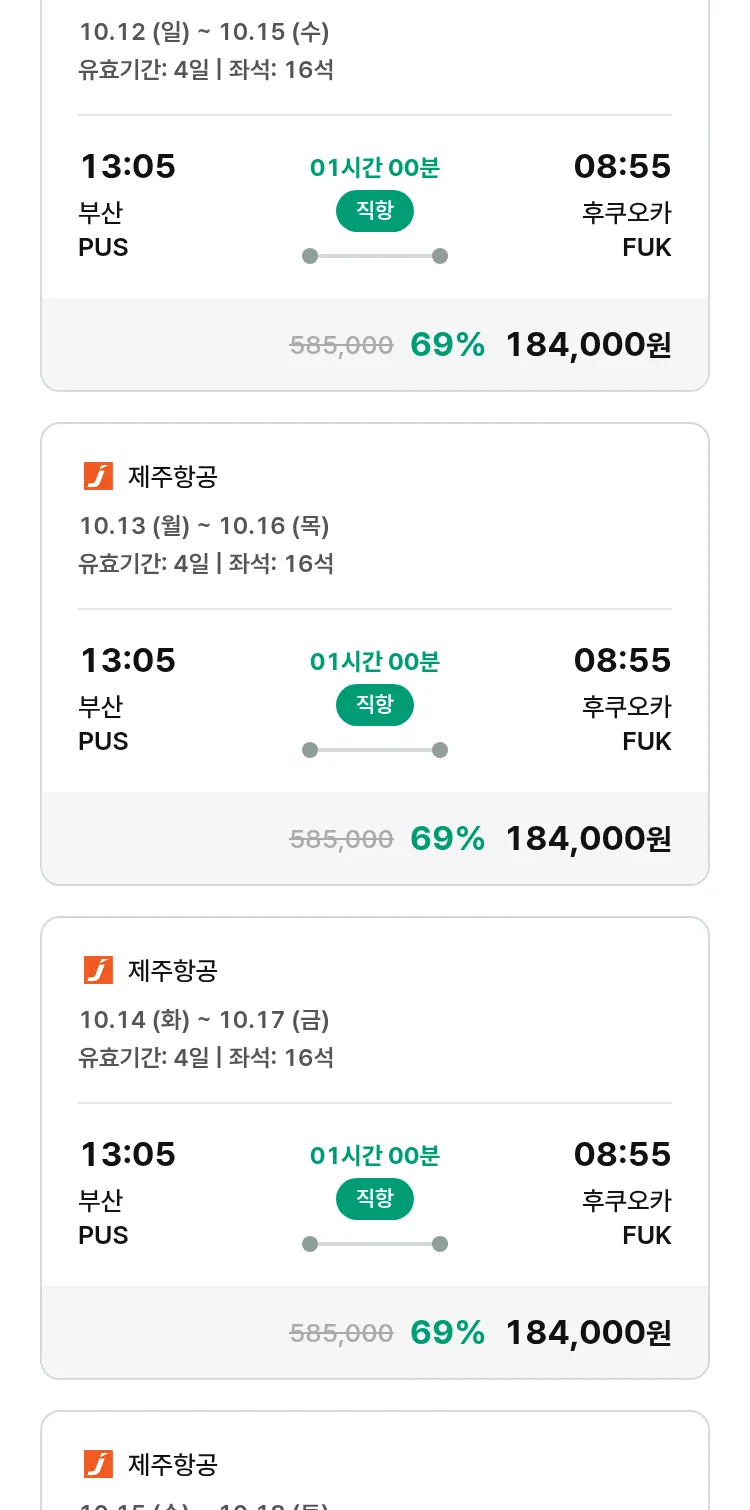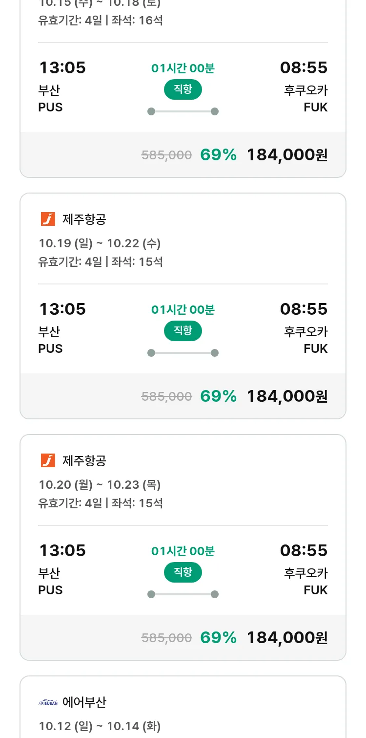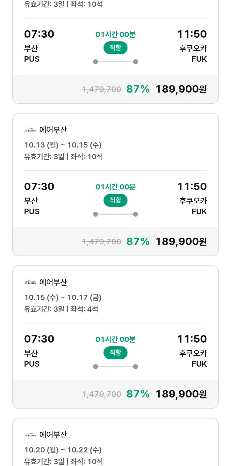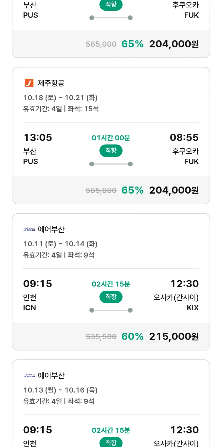 (9월 25일(목)) 땡처리 특가 항공권