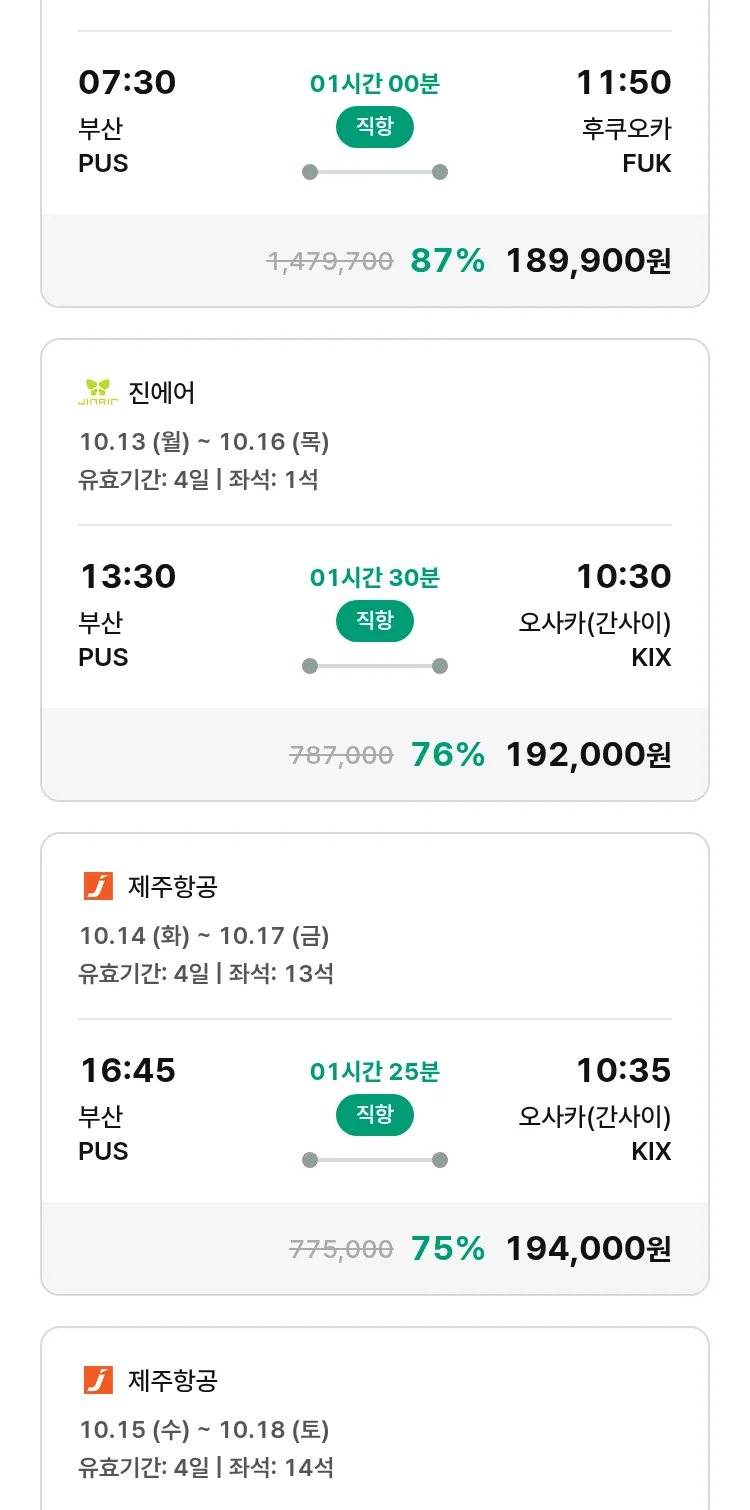 (9월 26일(금)) 땡처리 특가 항공권