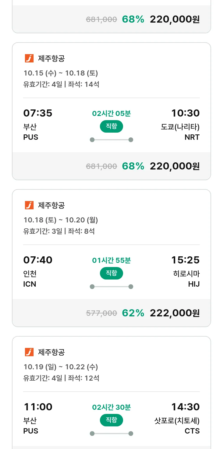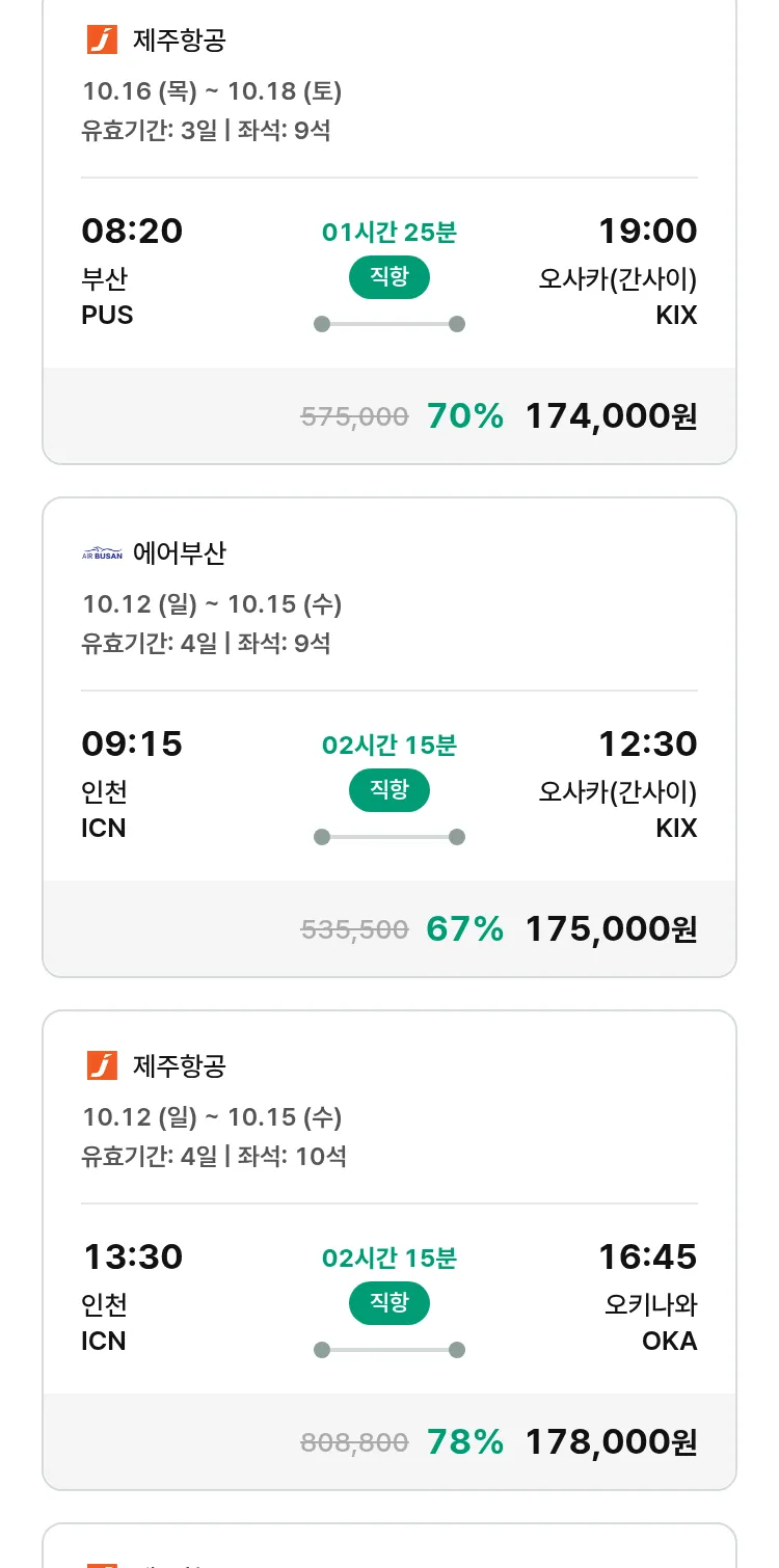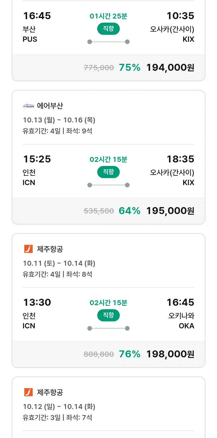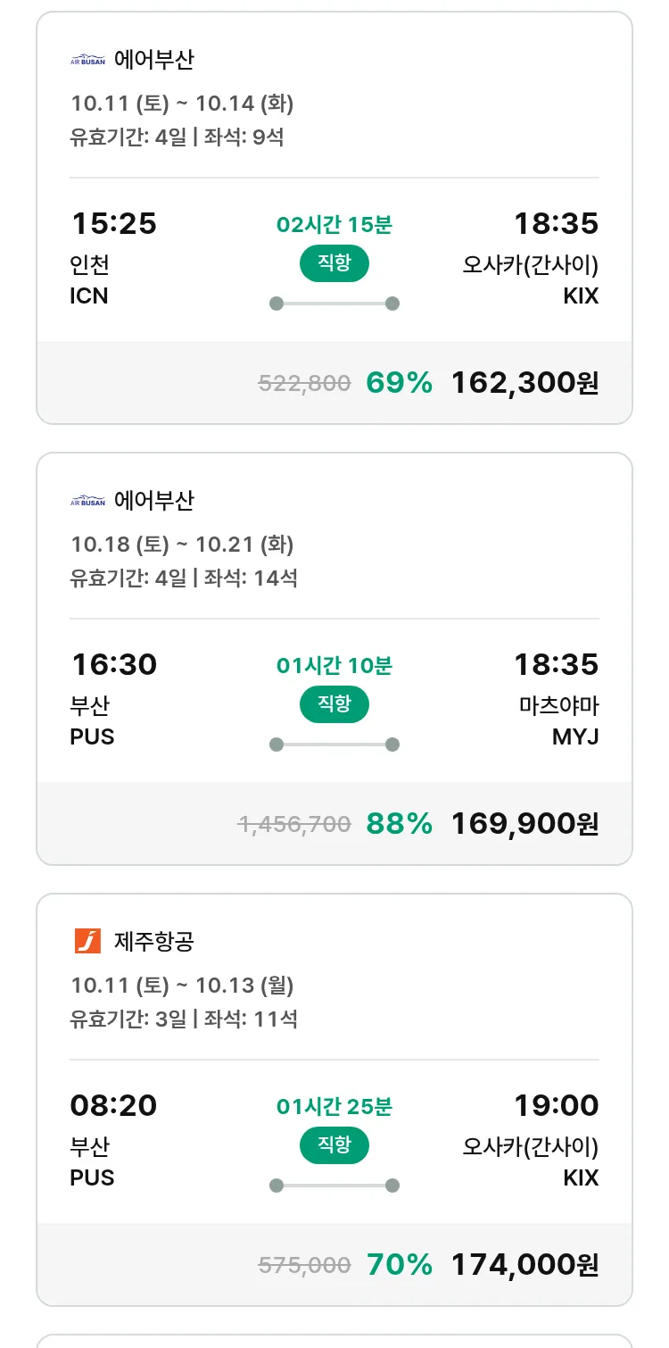 (9월 25일(목)) 모두투어 일본 특가 항공권