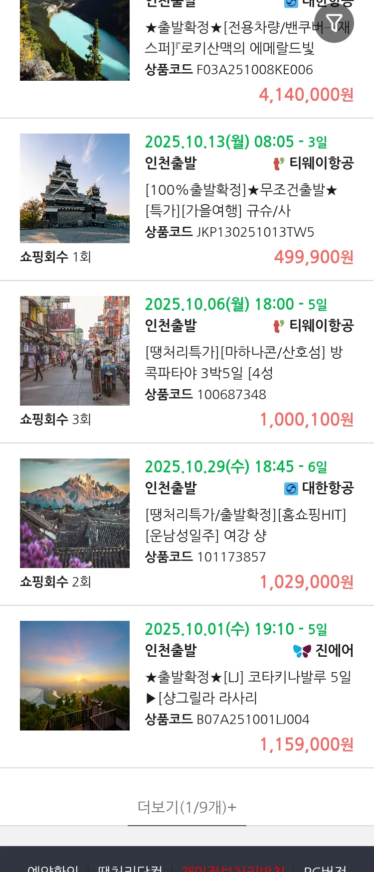 (9월 27일(토)) 땡처리 연휴 패키지 패키지