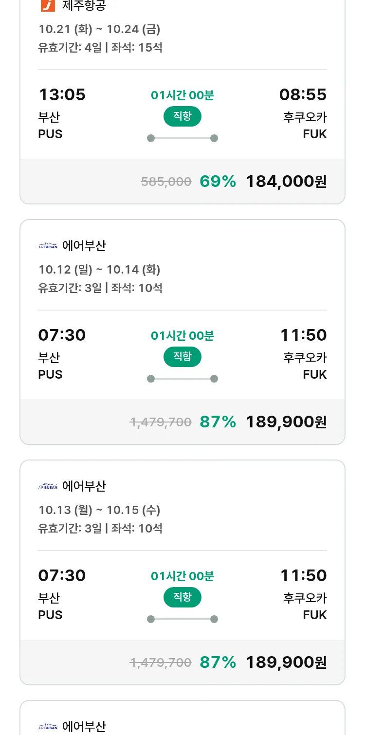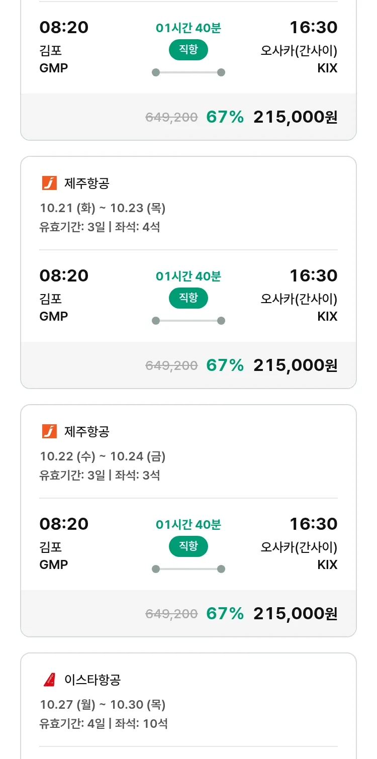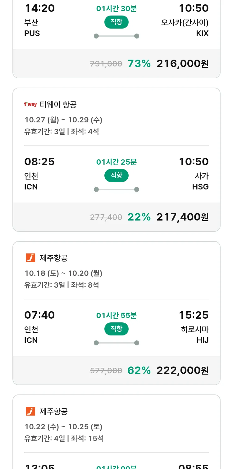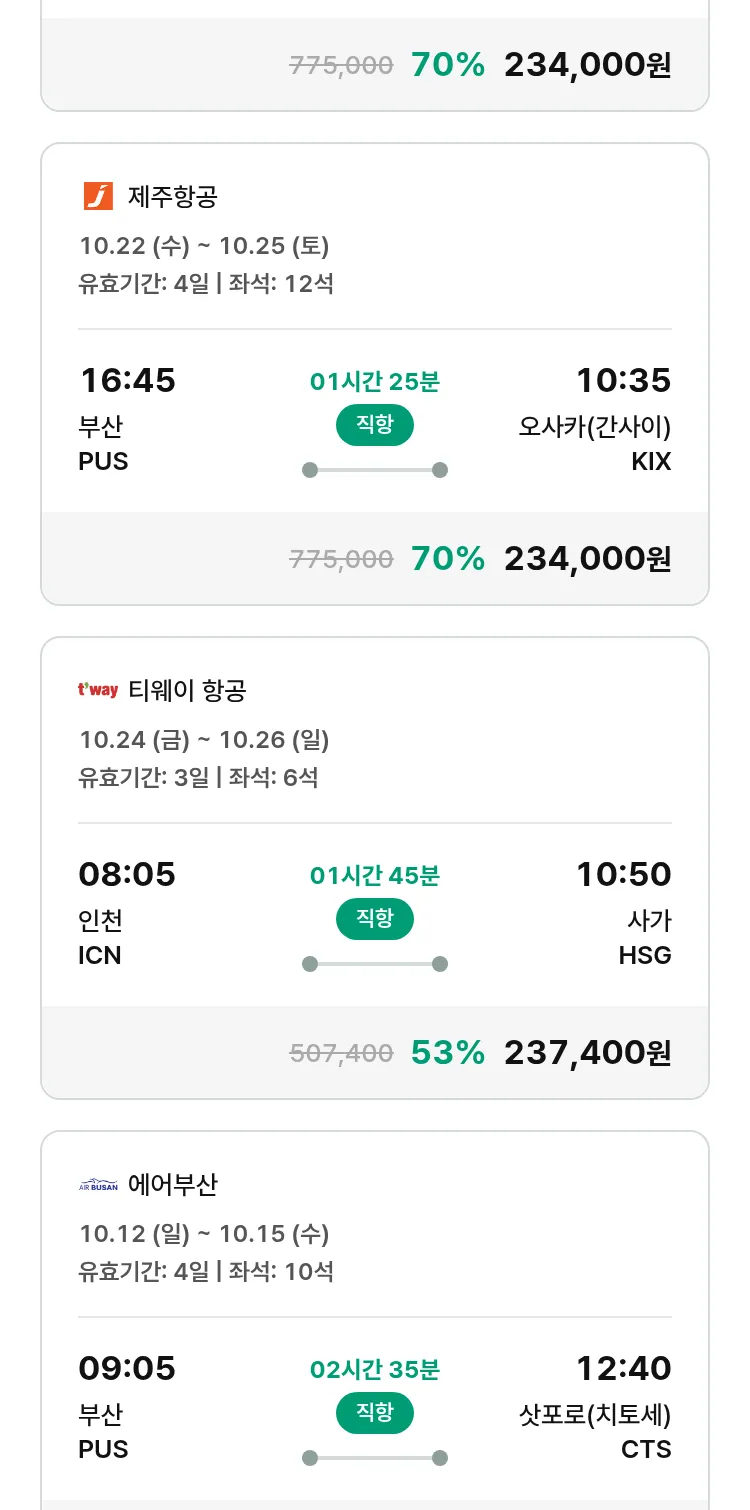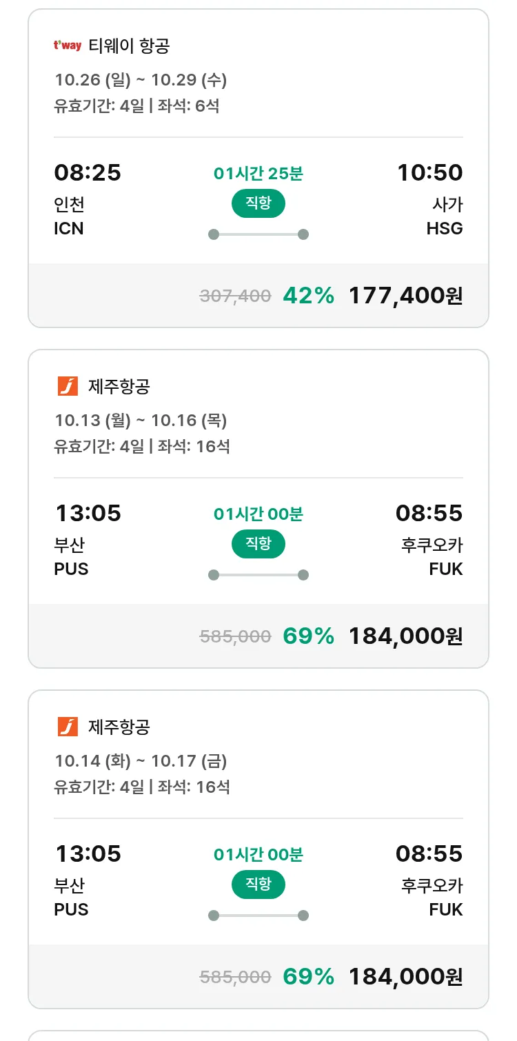 (9월 27일(토)) 모두투어 일본 특가 항공권