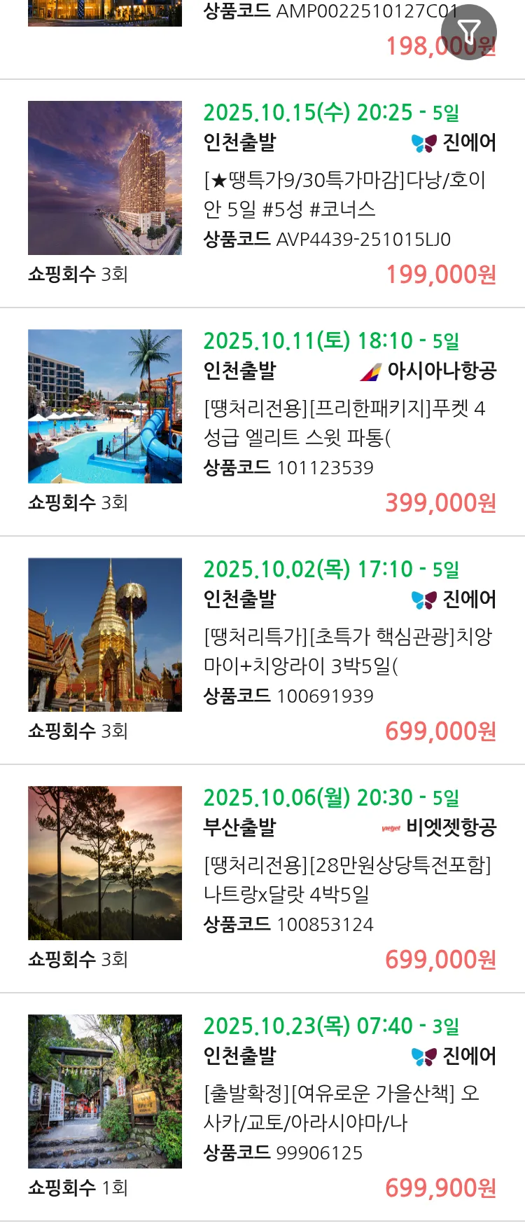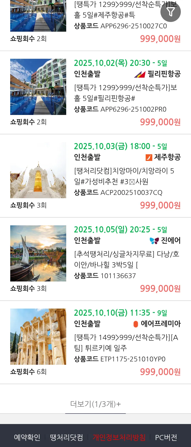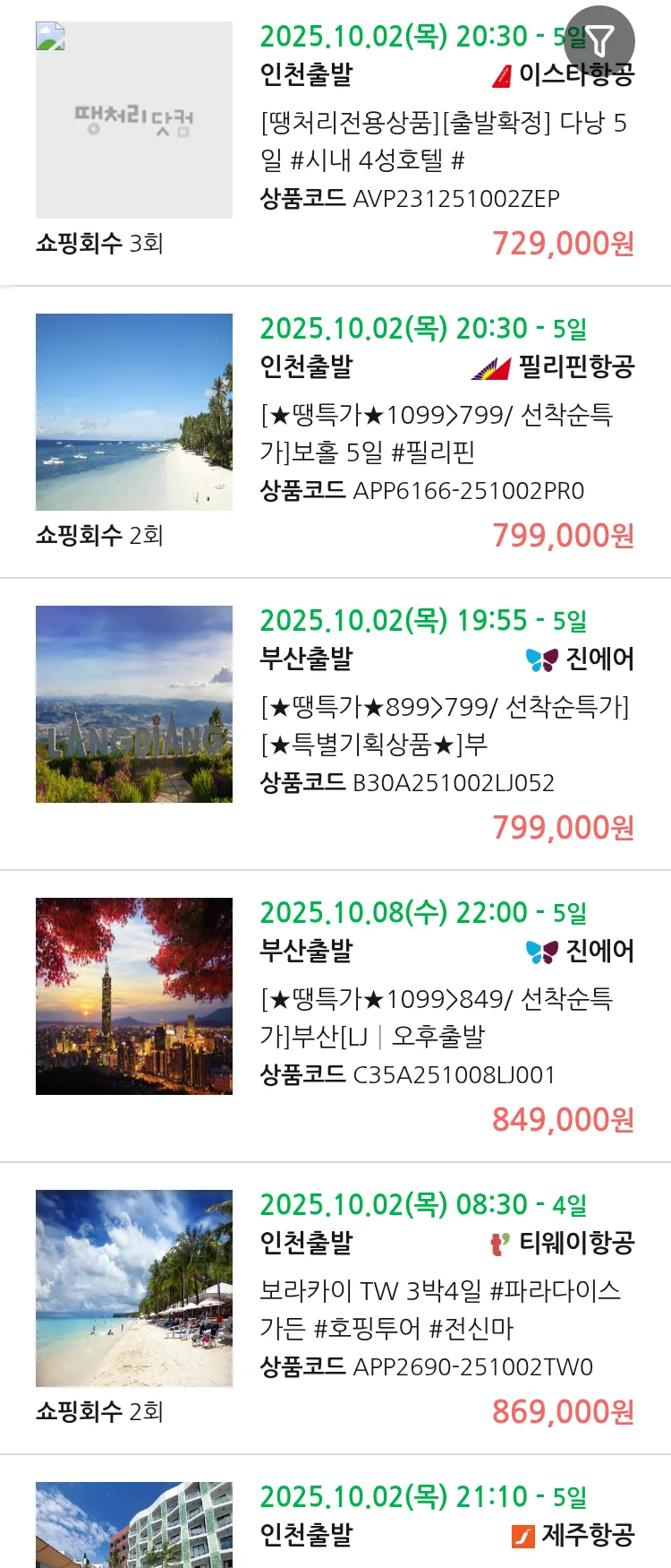 (9월 29일(월)) 땡처리 99.9% 확정 패키지