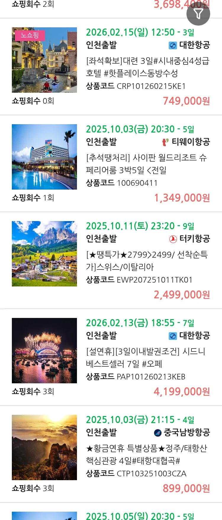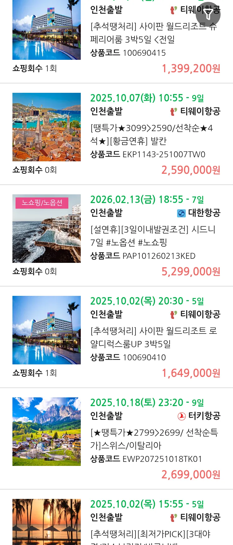 (9월 29일(월)) 땡처리 99.9% 확정 패키지