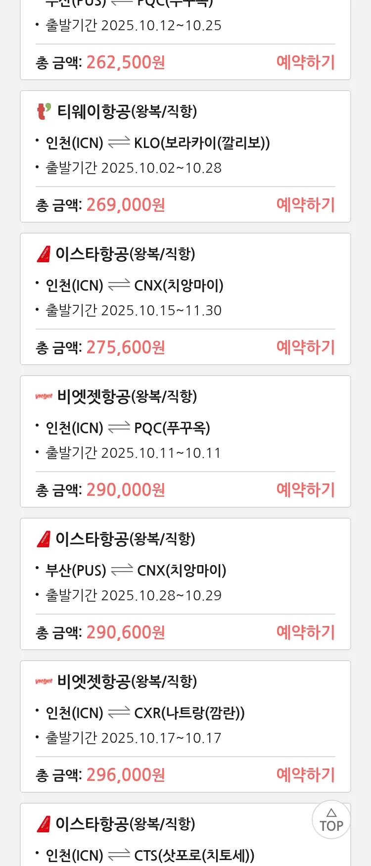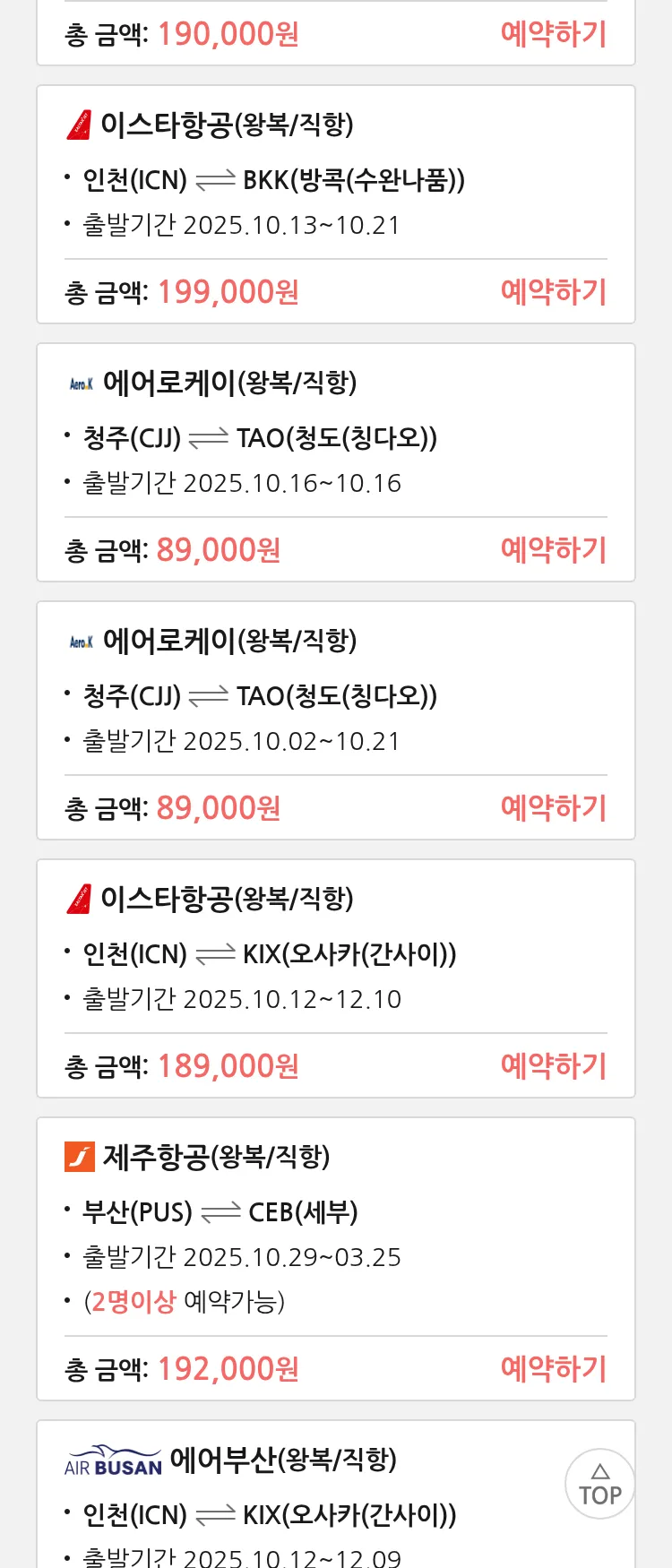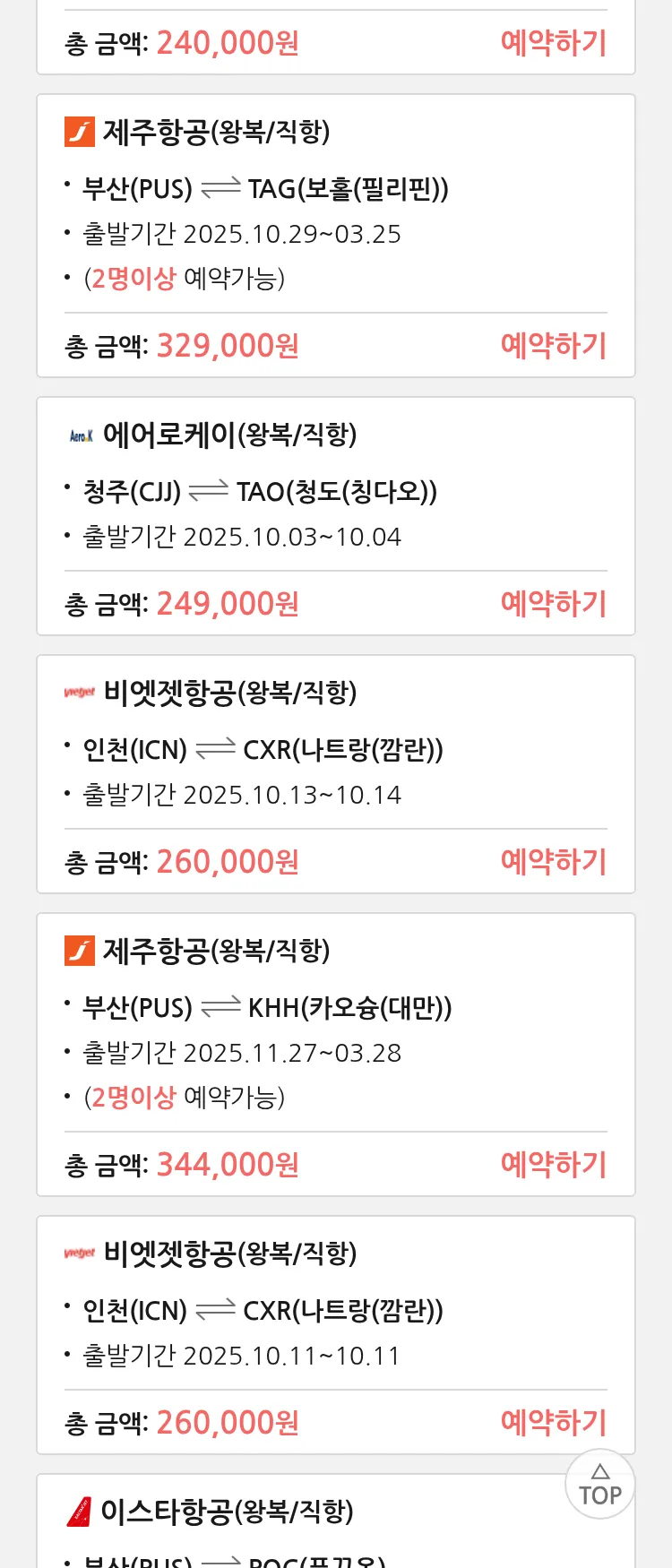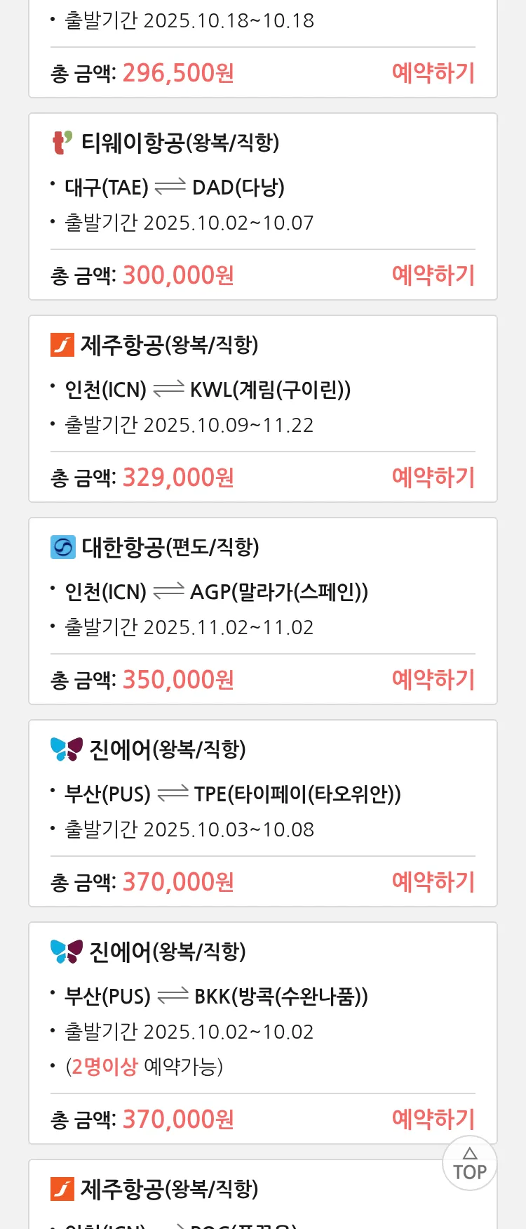 (9월 29일(월)) 모두투어 동남아 특가 항공권