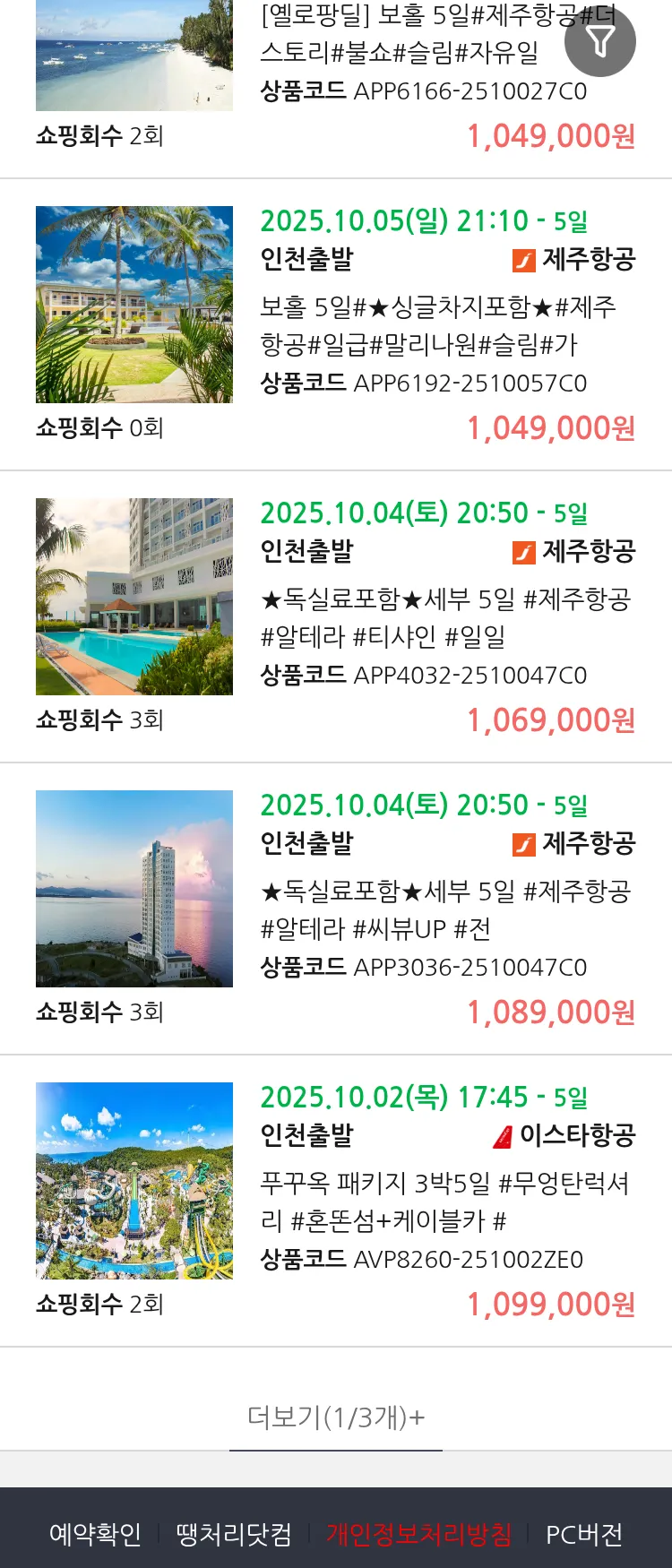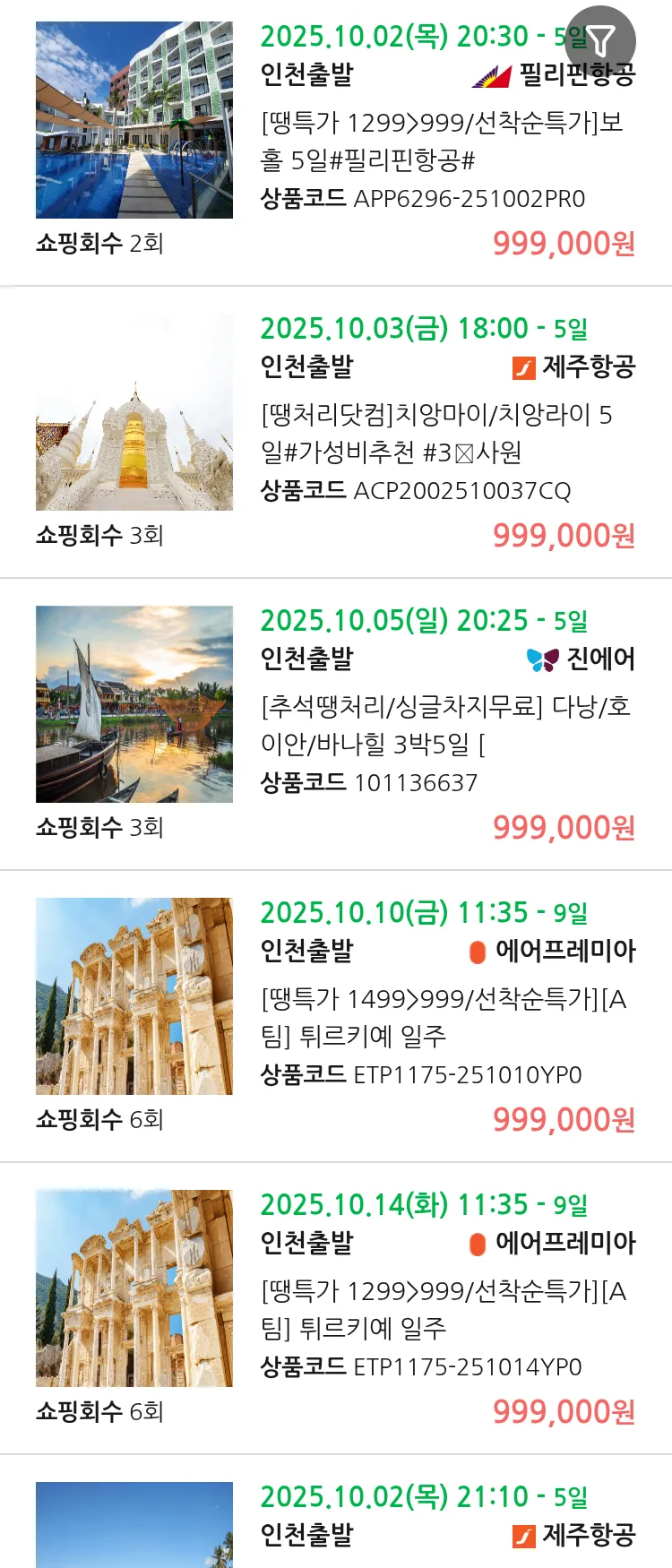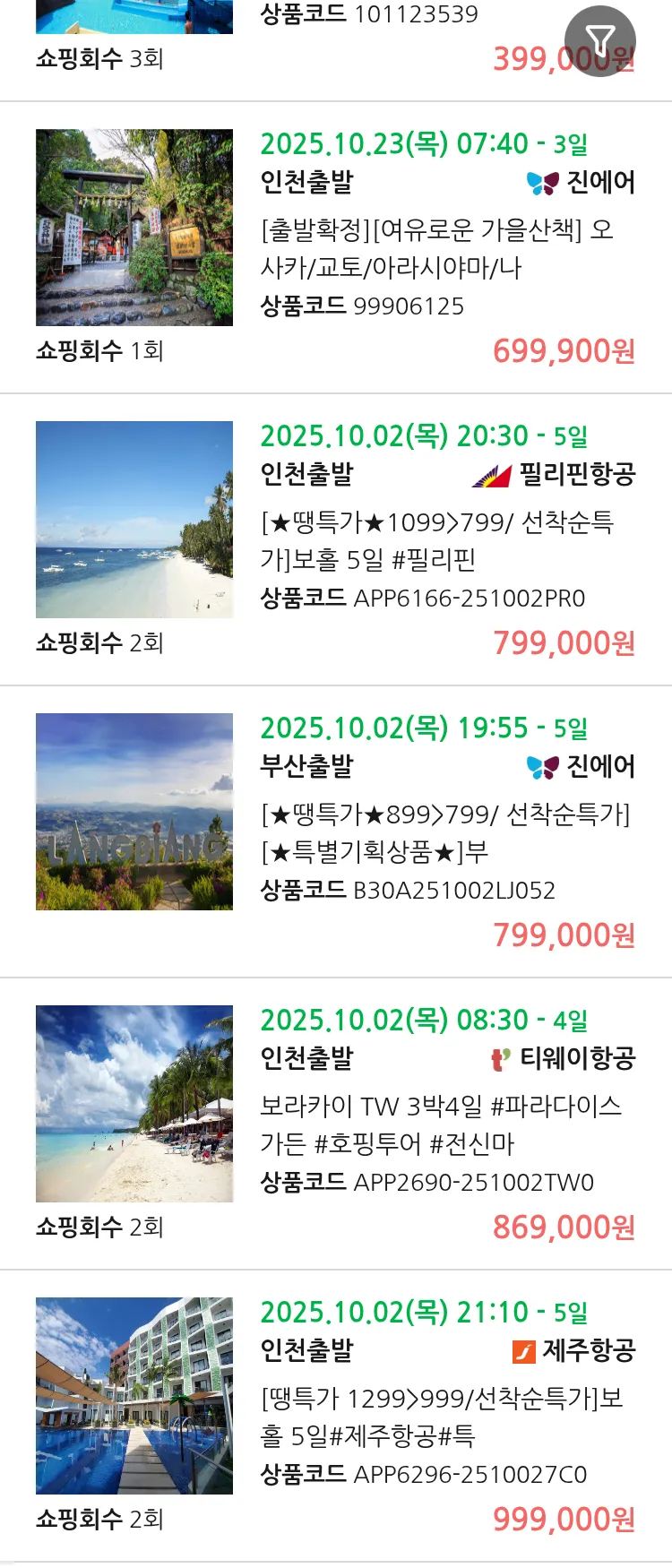 (9월 29일(월)) 땡처리 99.9% 확정 패키지