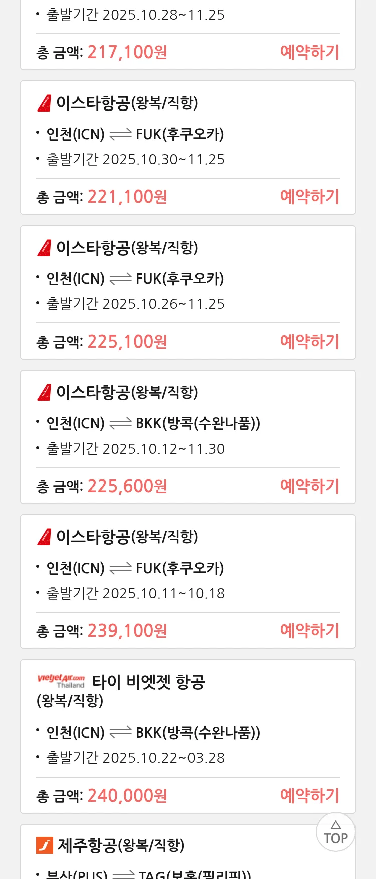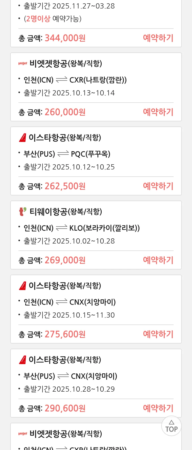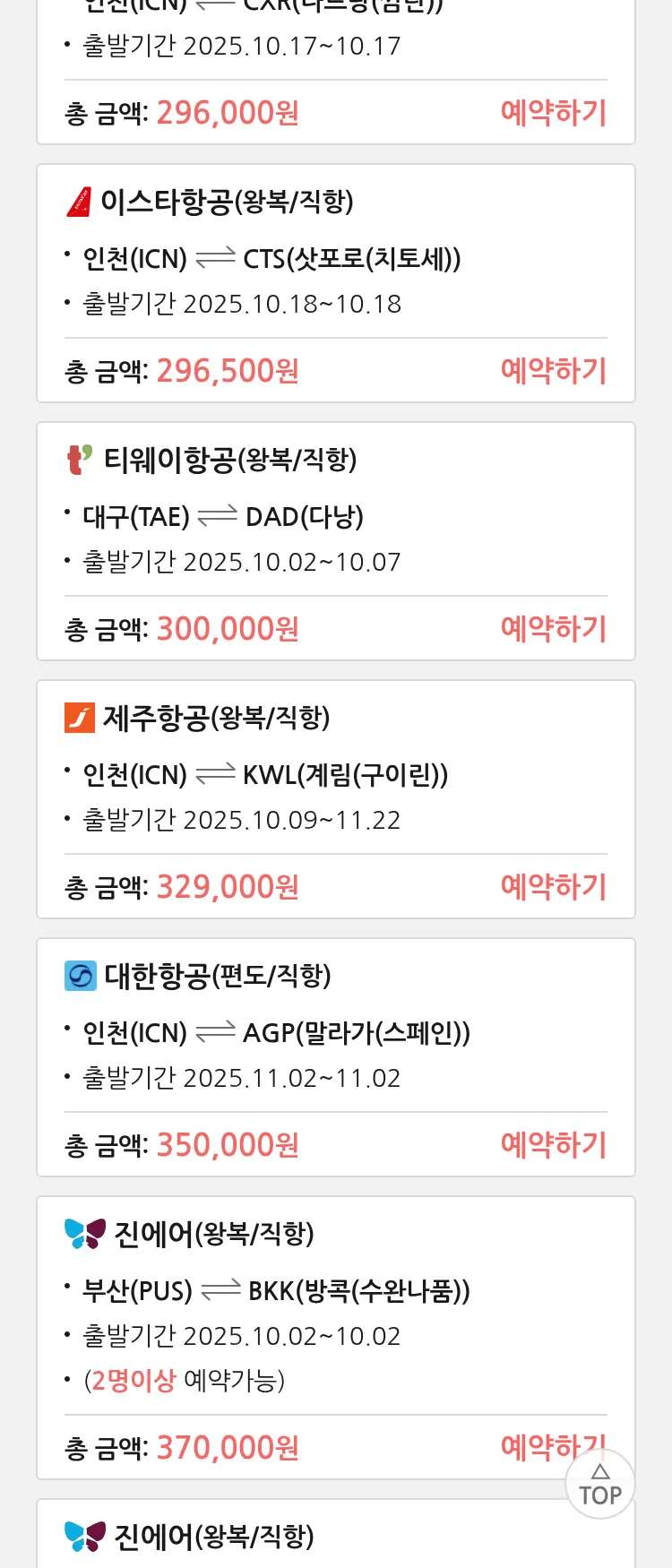 (9월 29일(월)) 모두투어 동남아 특가 항공권