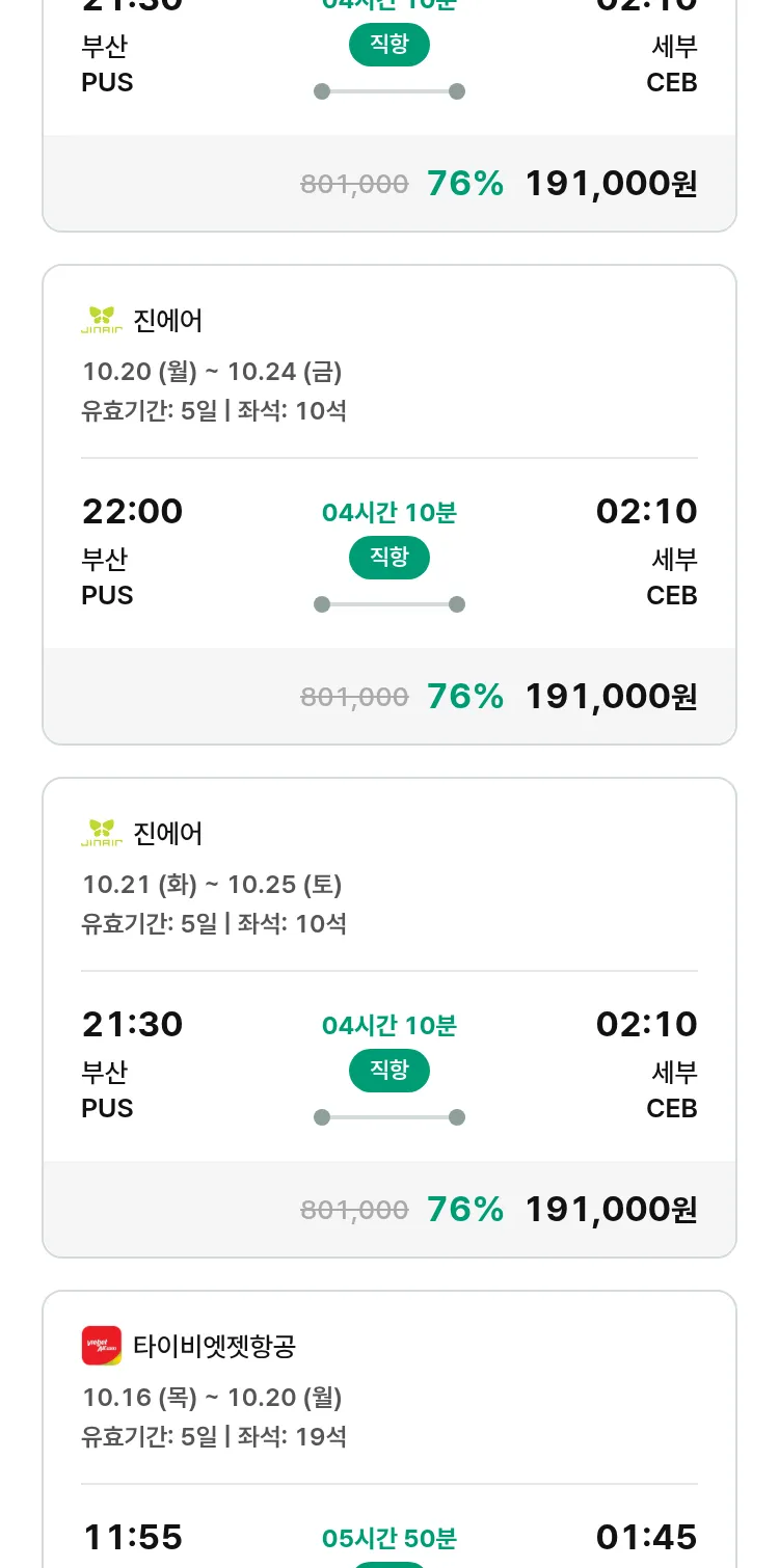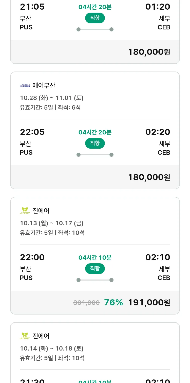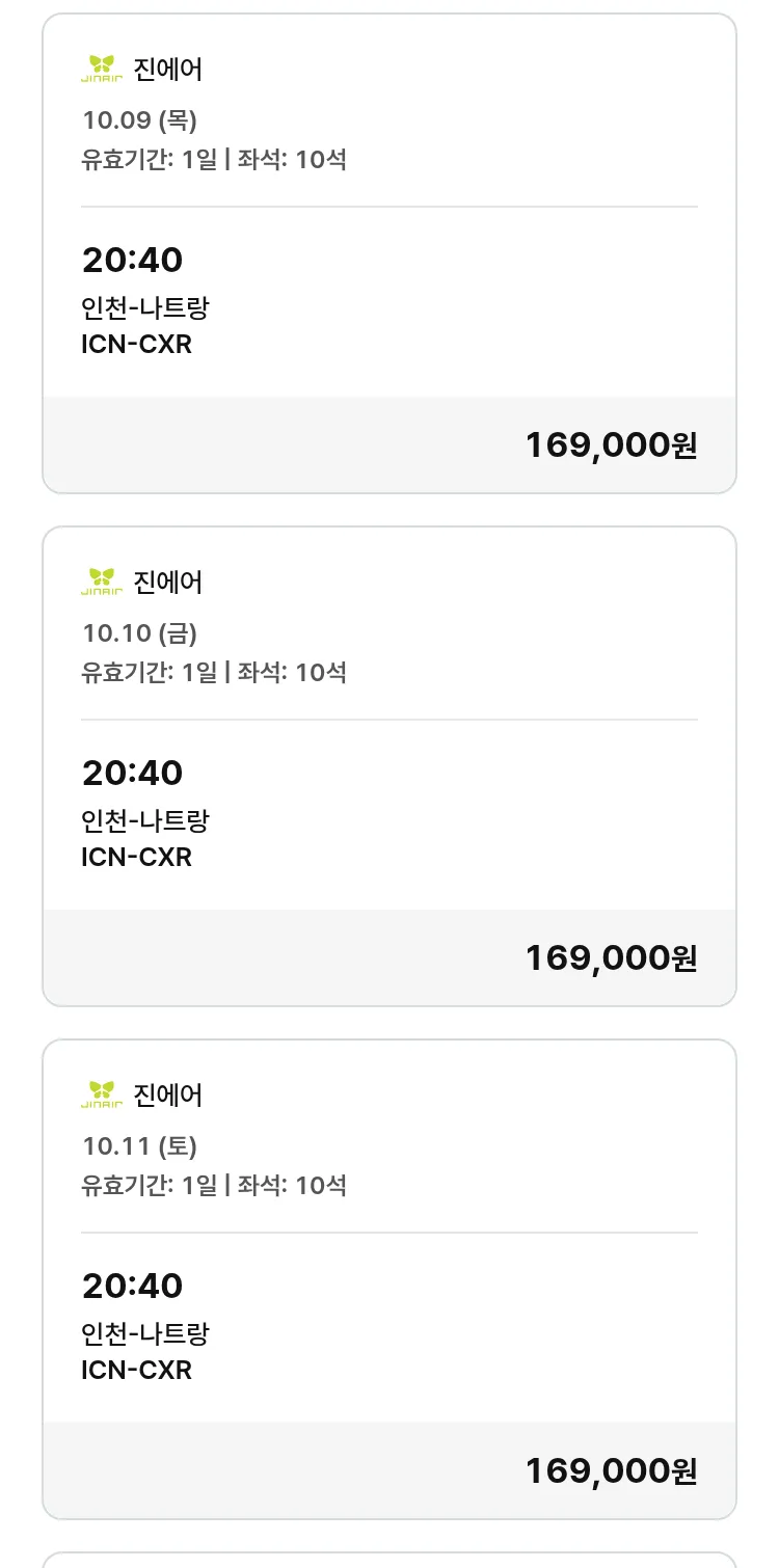 (9월 29일(월)) 땡처리 특가 항공권