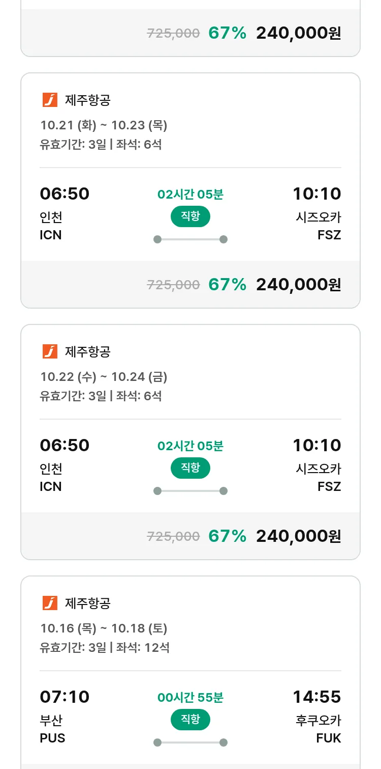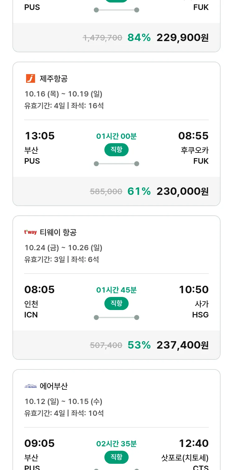 (9월 29일(월)) 모두투어 일본 특가 항공권