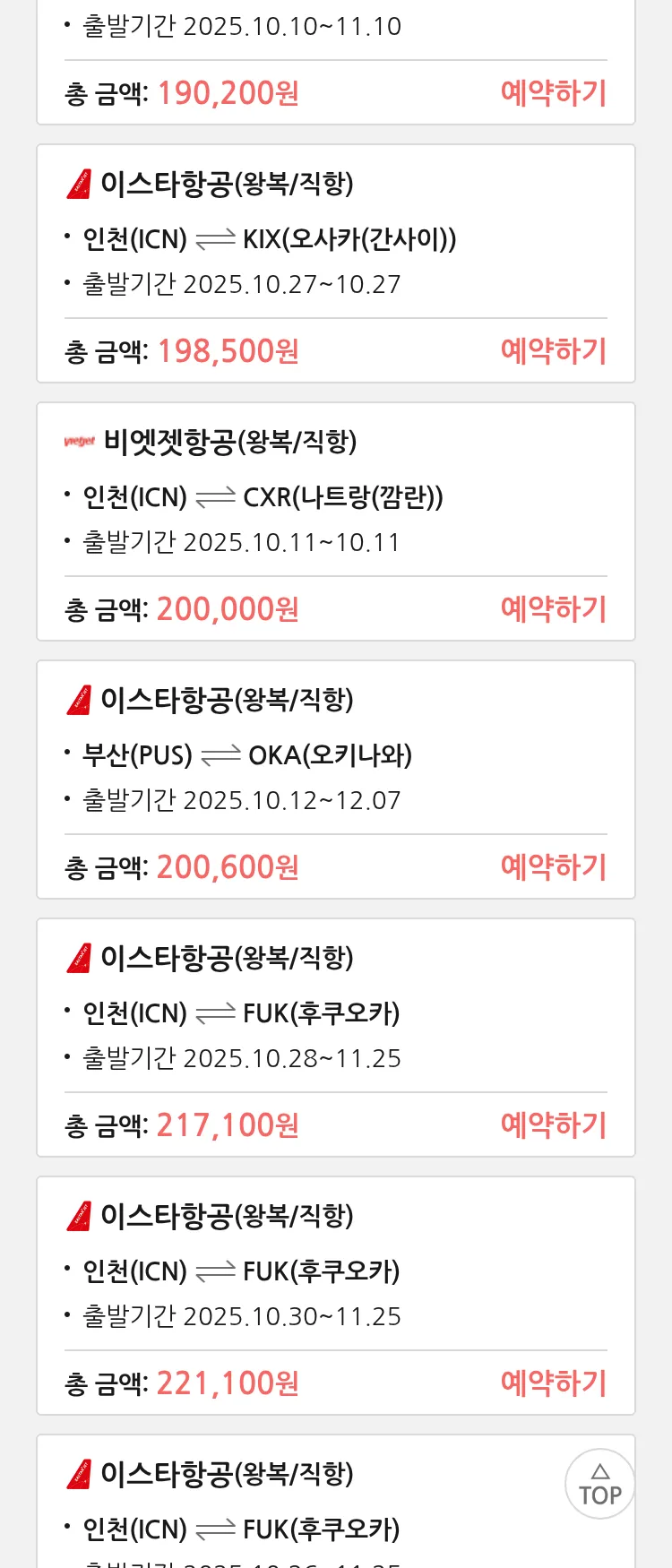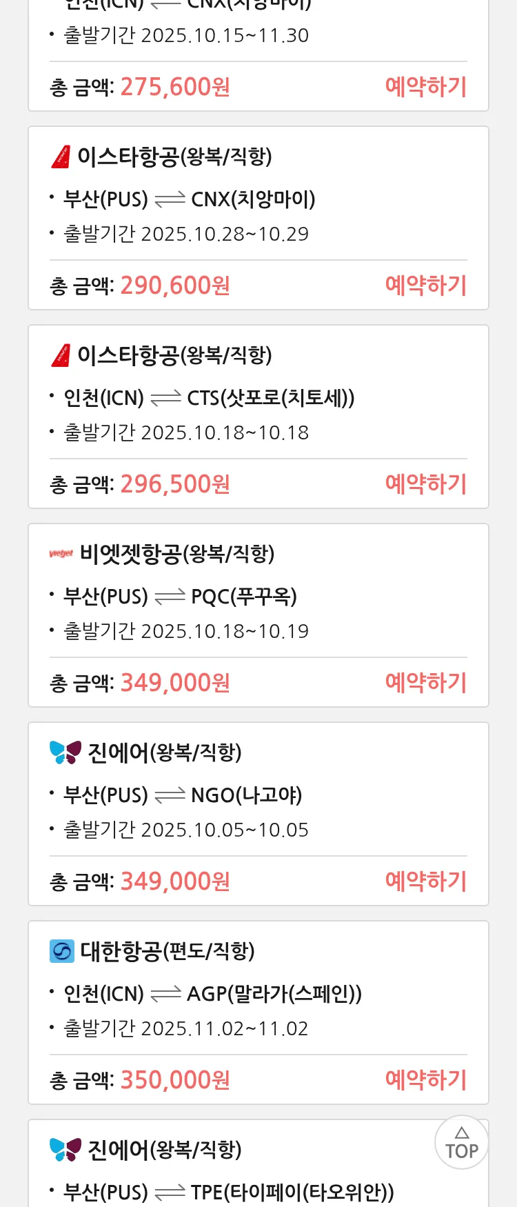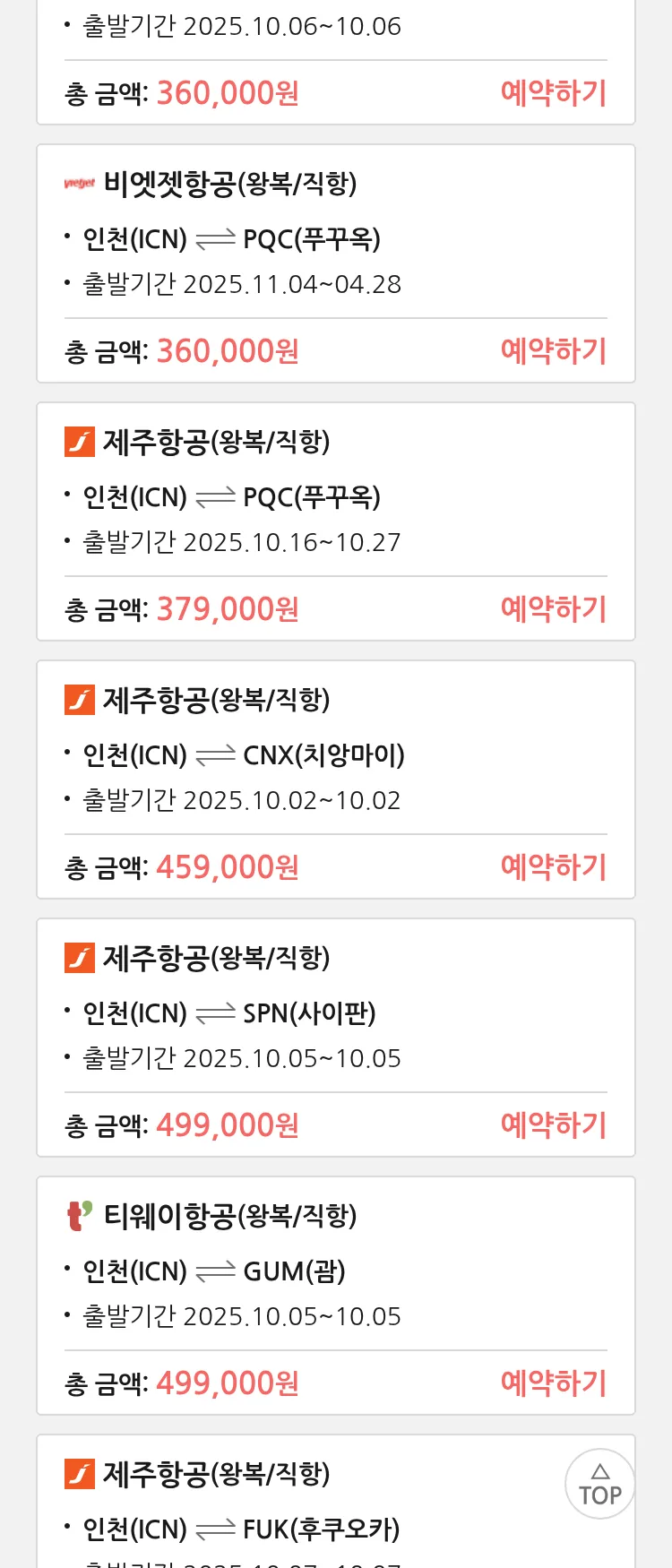 (9월 30일(화)) 땡처리 특가 항공권