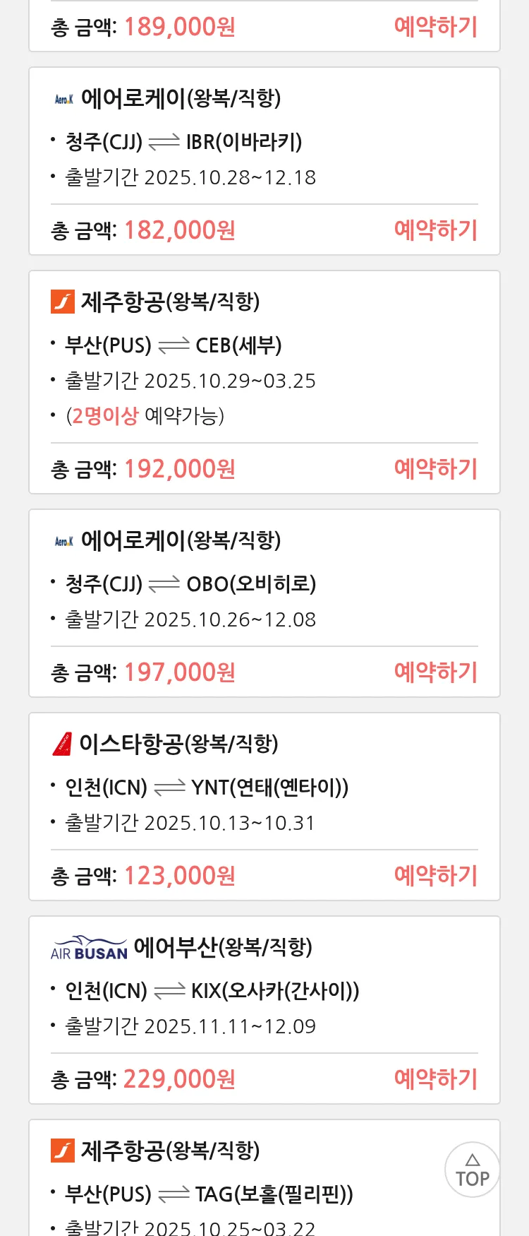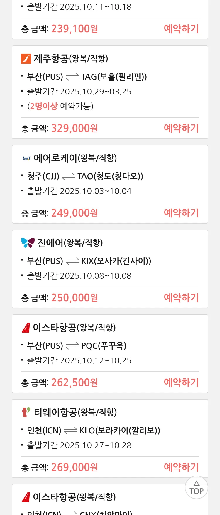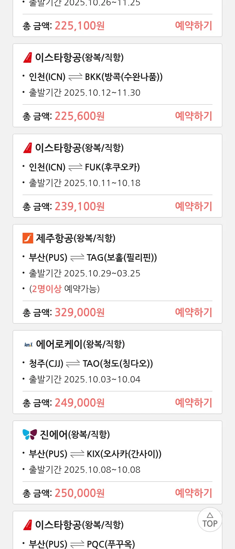 (9월 29일(월)) 땡처리 특가 항공권