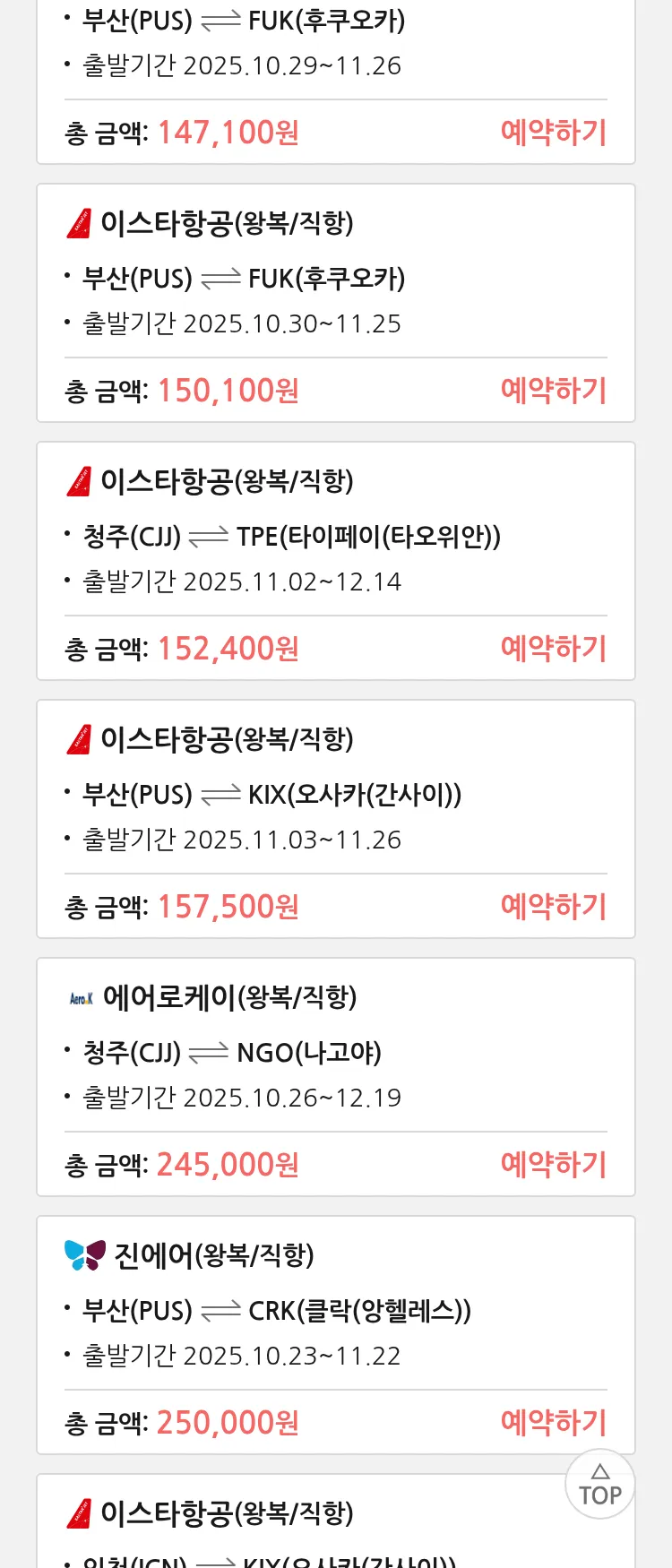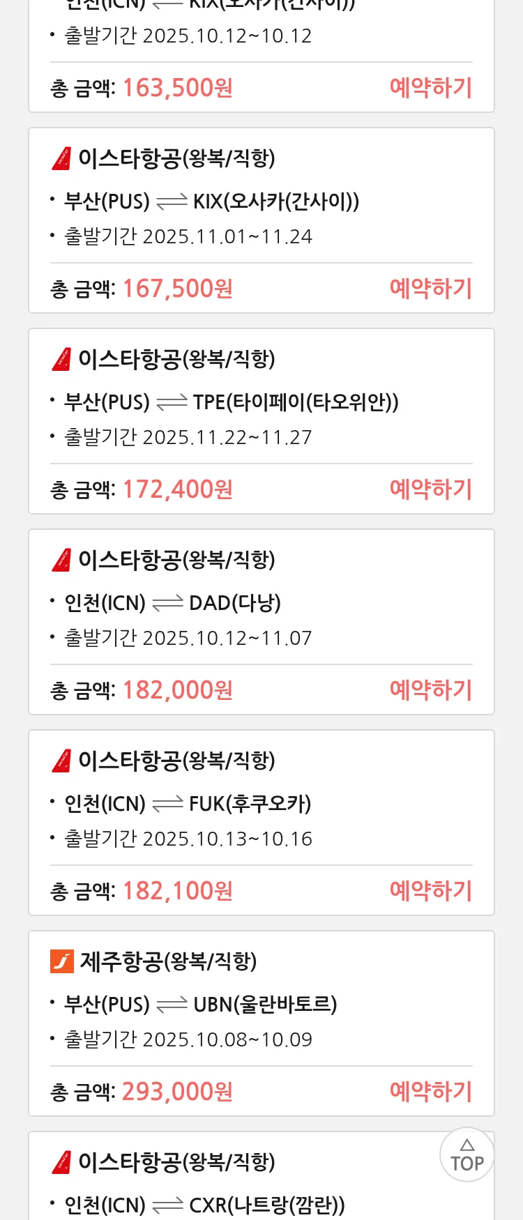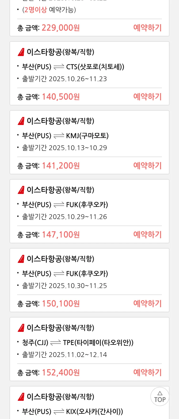 (9월 29일(월)) 땡처리 특가 항공권