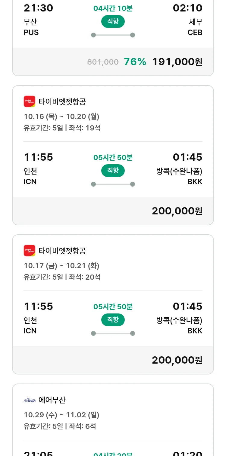 (9월 30일(화)) 땡처리 특가 항공권