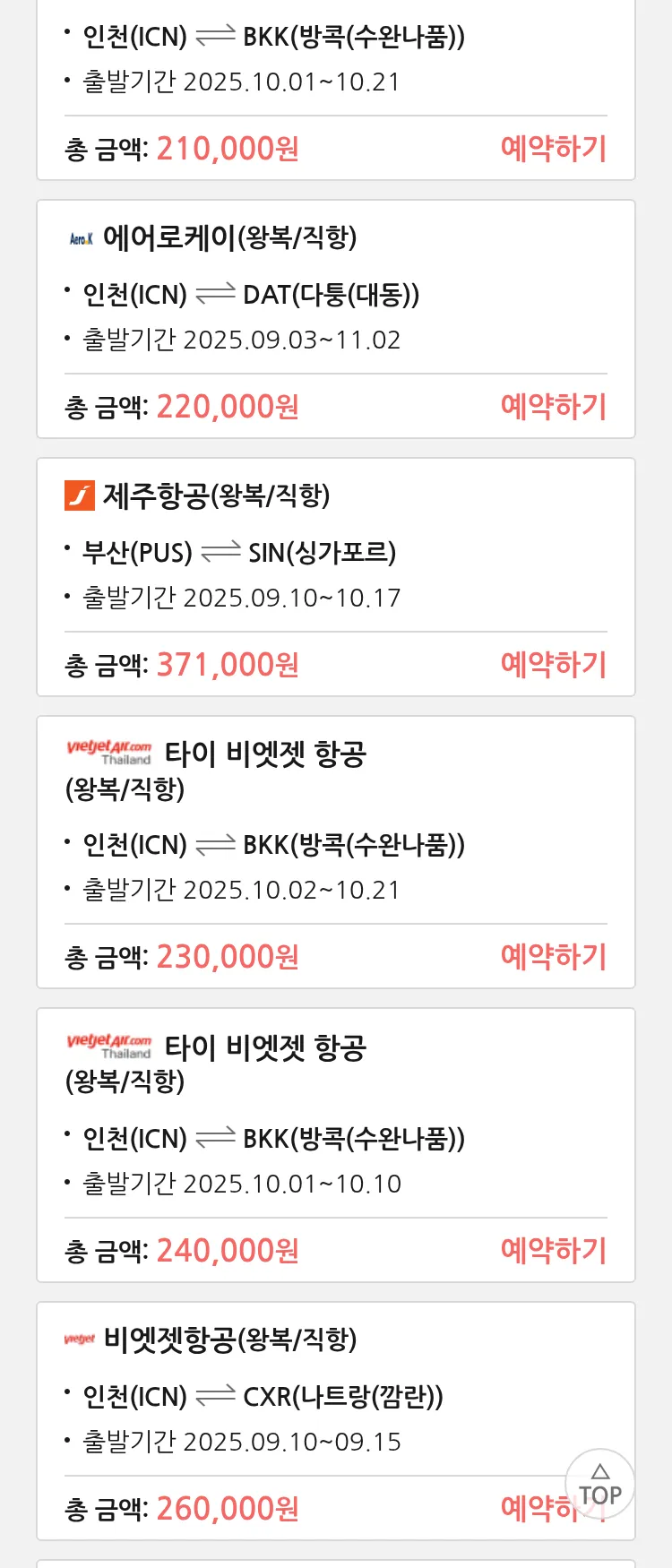 (9월3일(수)) 모두투어 동남아 특가 항공권
