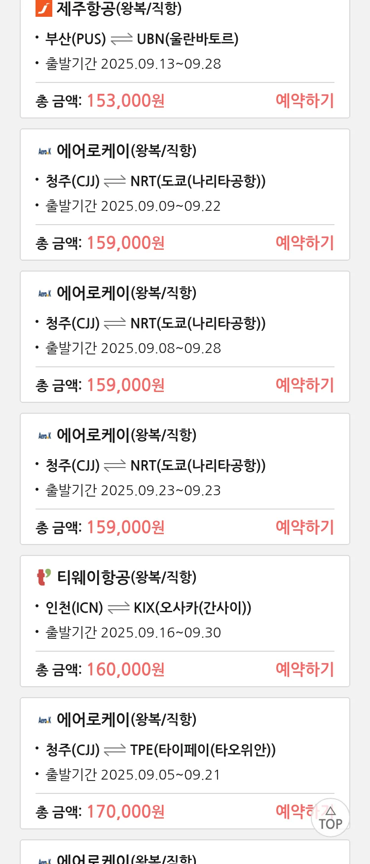 (9월2일(화)) 모두투어 일본 특가 항공권
