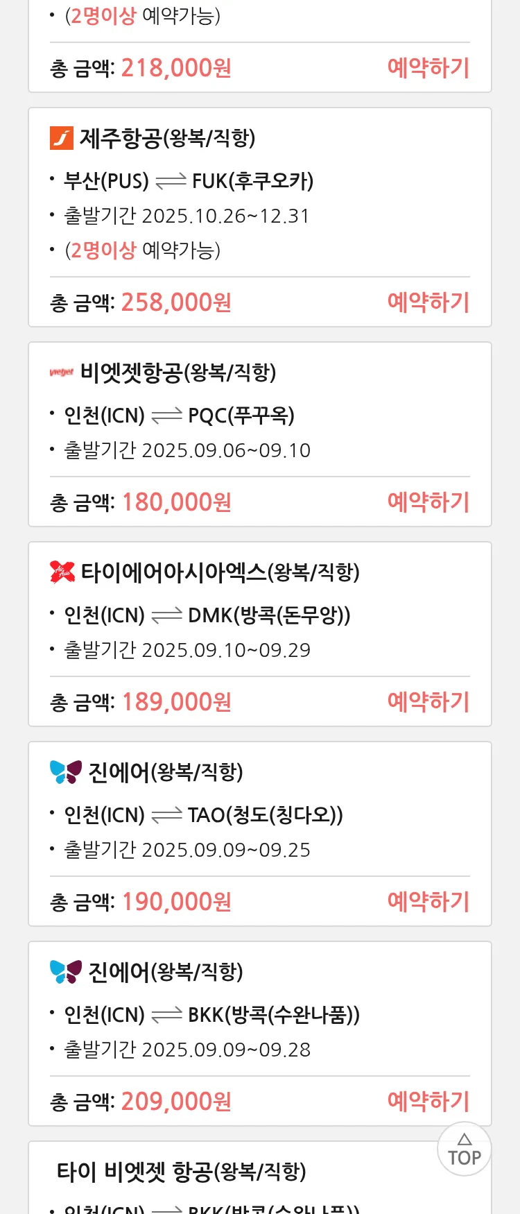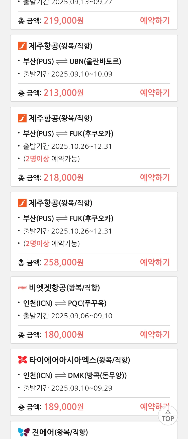 (9월2일(화)) 모두투어 동남아 특가 항공권