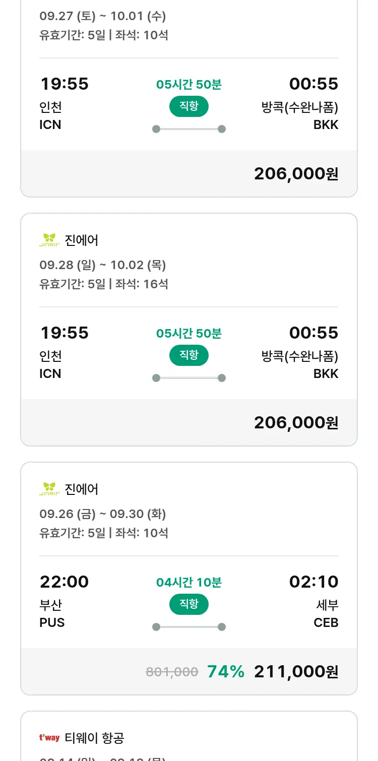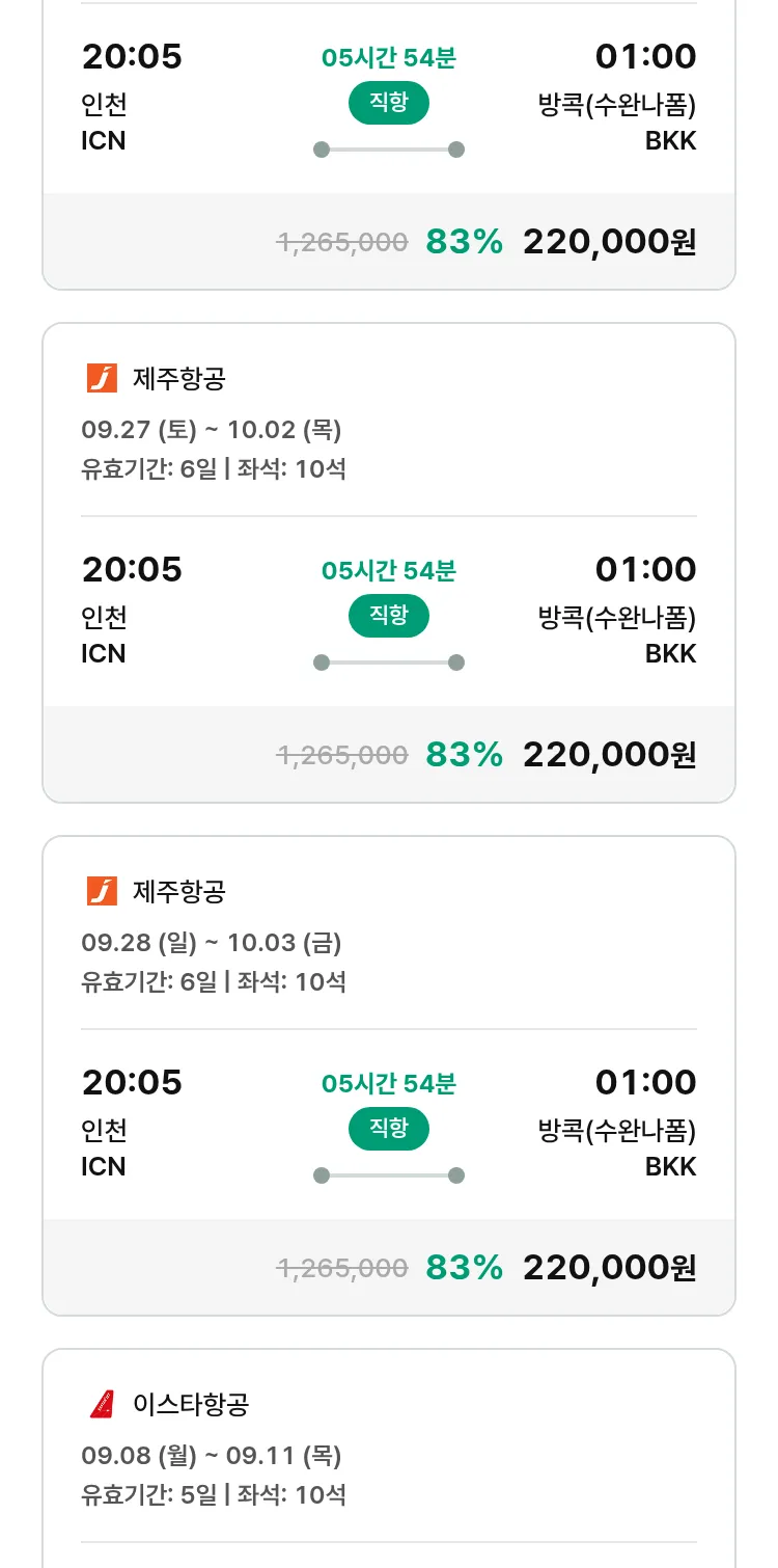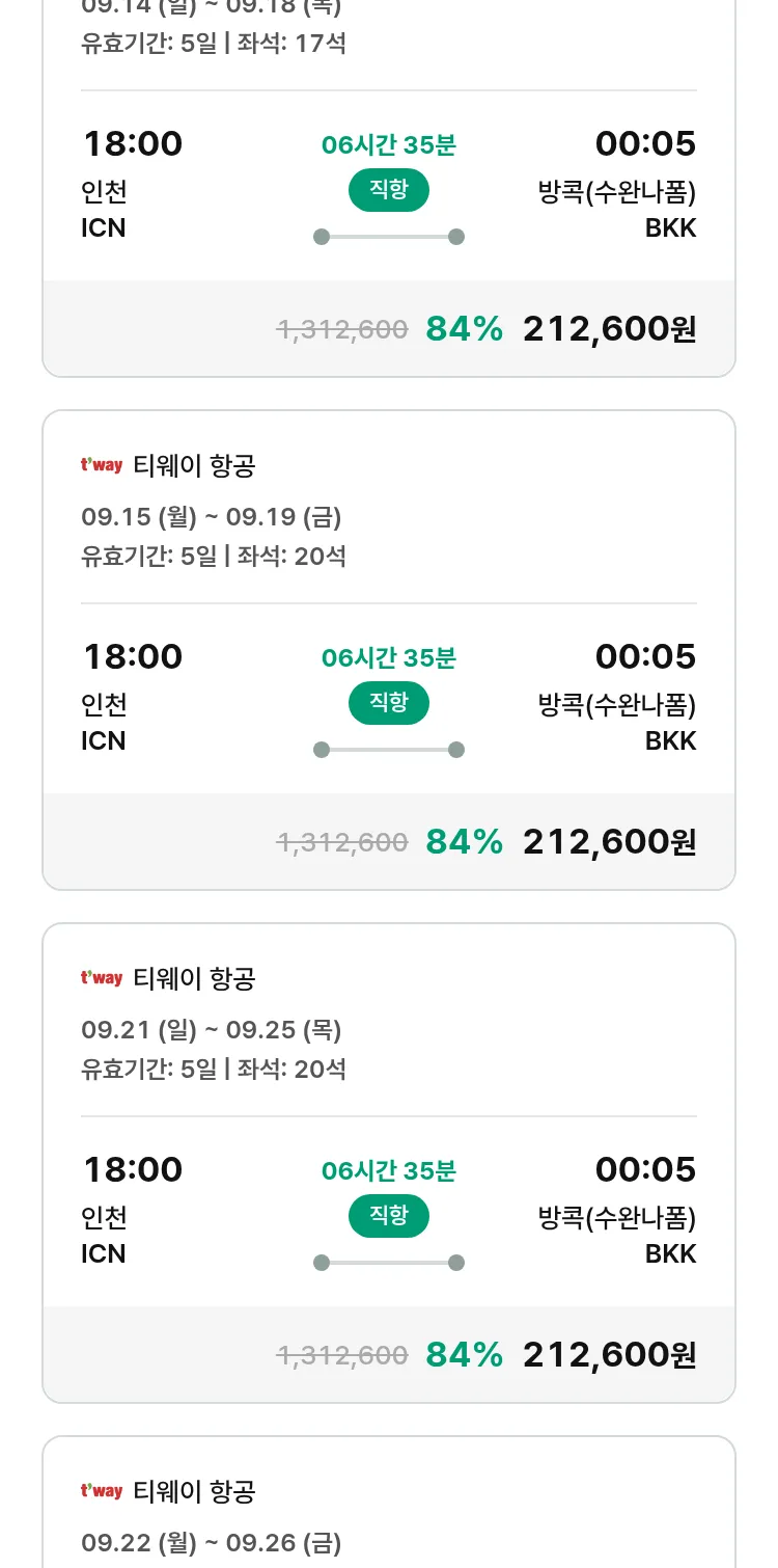 (9월1일(월)) 모두투어 동남아 특가 항공권