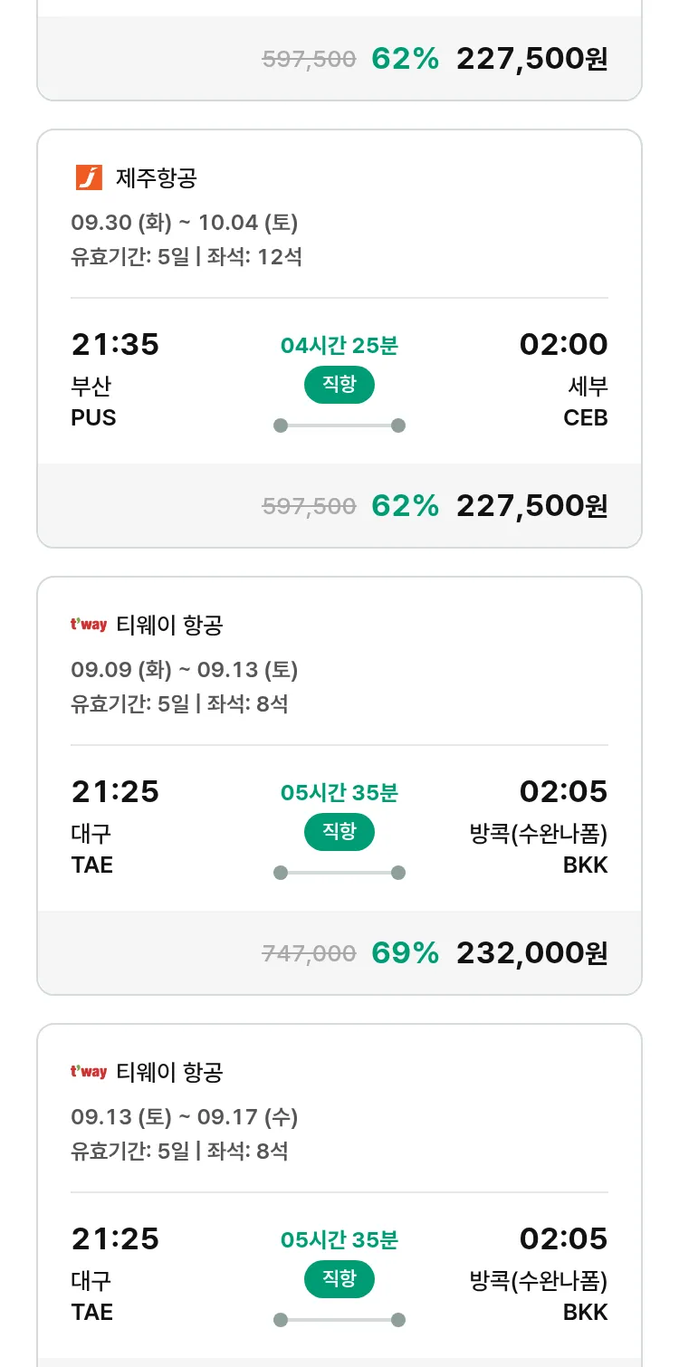(8월 30일(토)) 모두투어 동남아 특가 항공권
