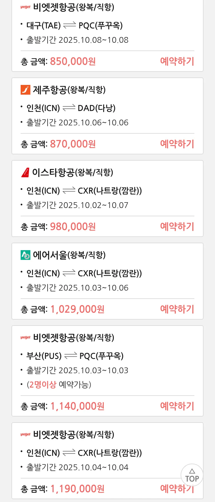 (9월2일(화)) 모두투어 동남아 특가 항공권