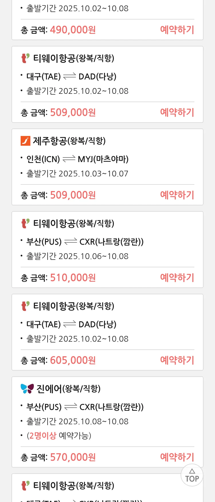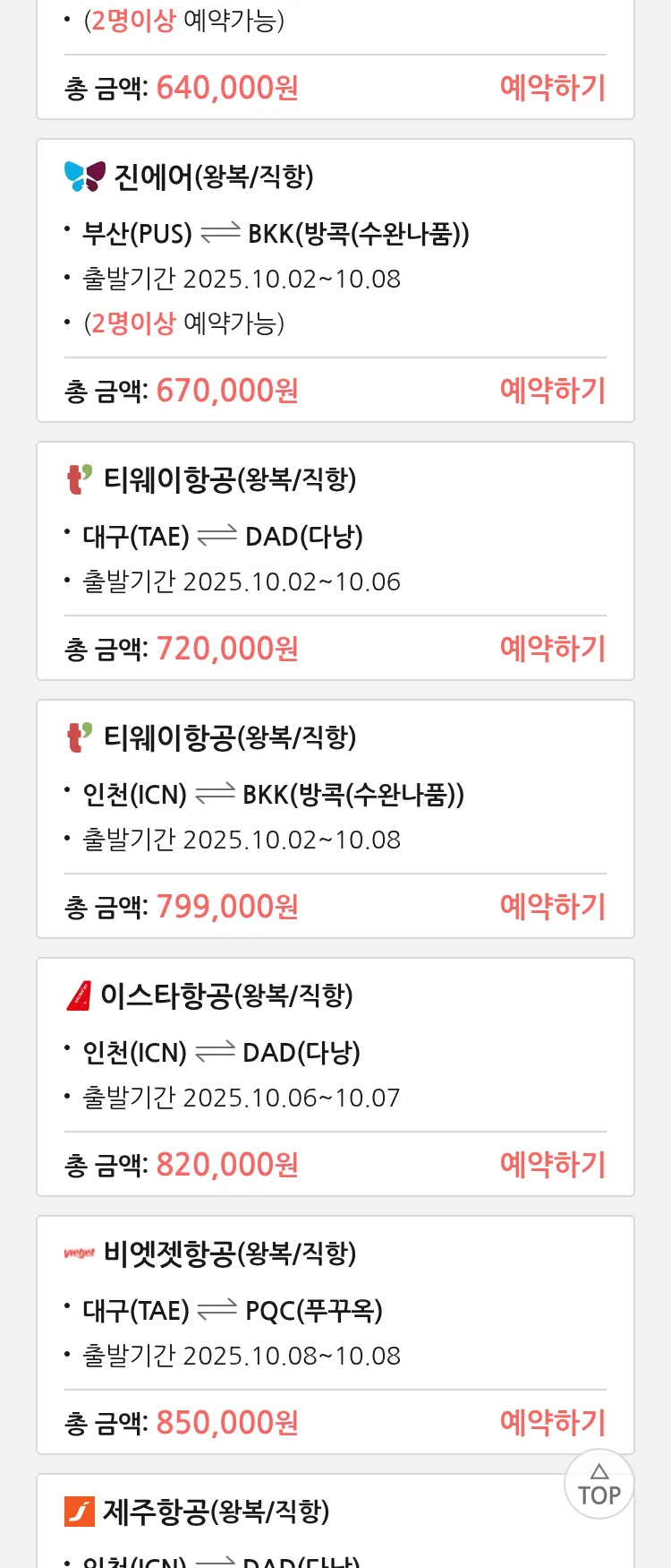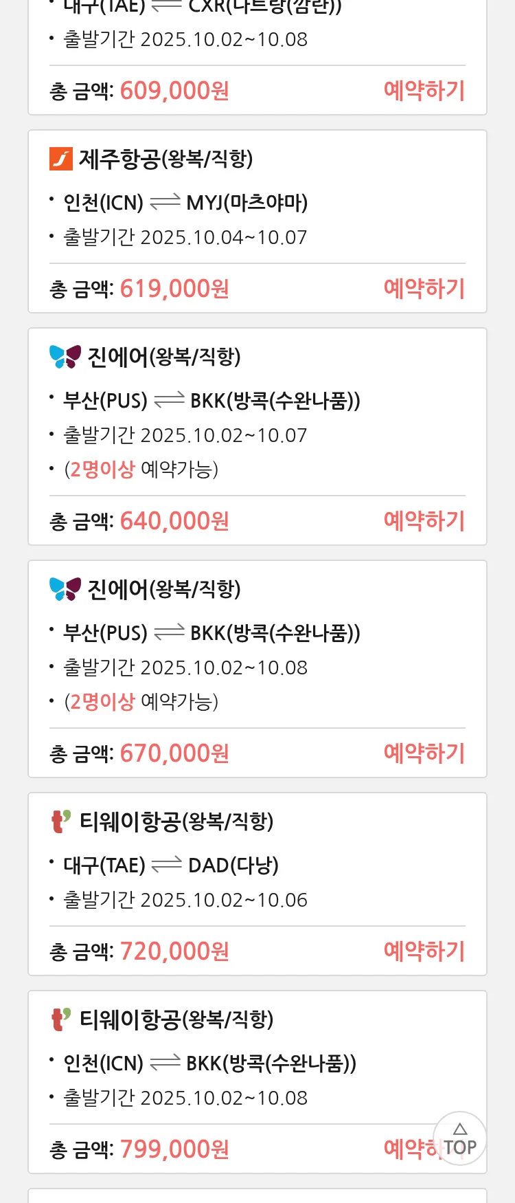 (9월2일(화)) 땡처리 특가 항공권