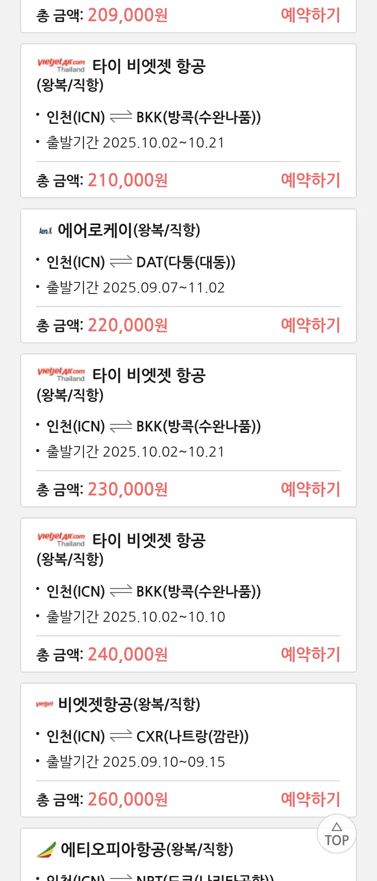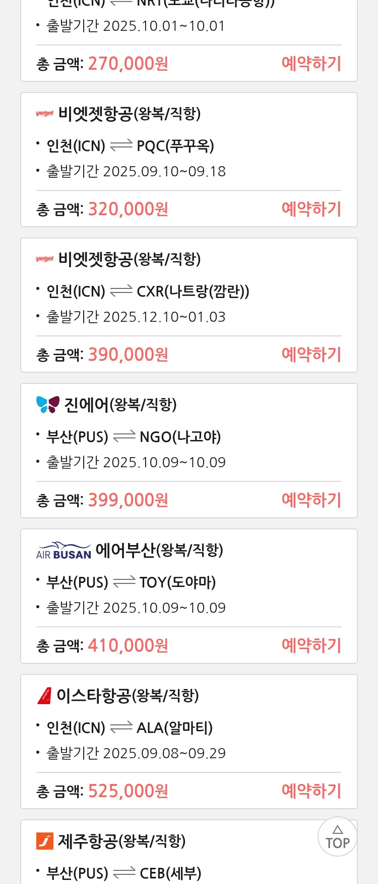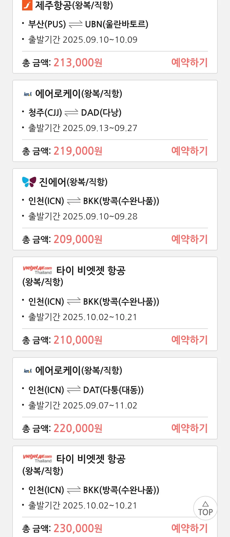 (9월3일(수)) 땡처리 특가 항공권