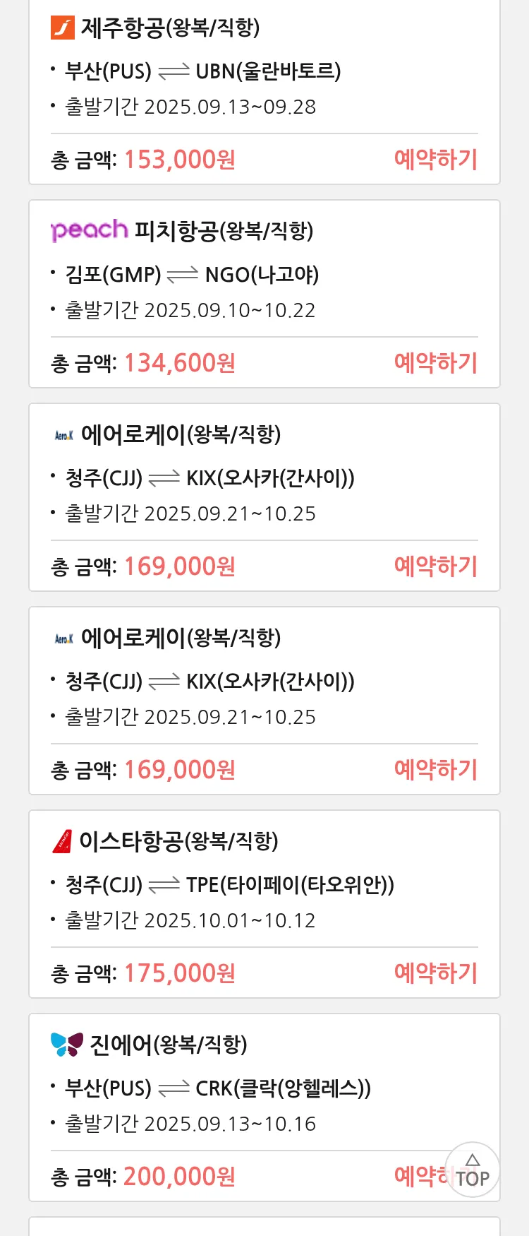 (9월1일(월)) 땡처리 특가 항공권
