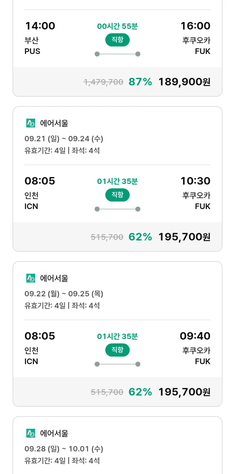 (9월4일(목)) 모두투어 일본 특가 항공권