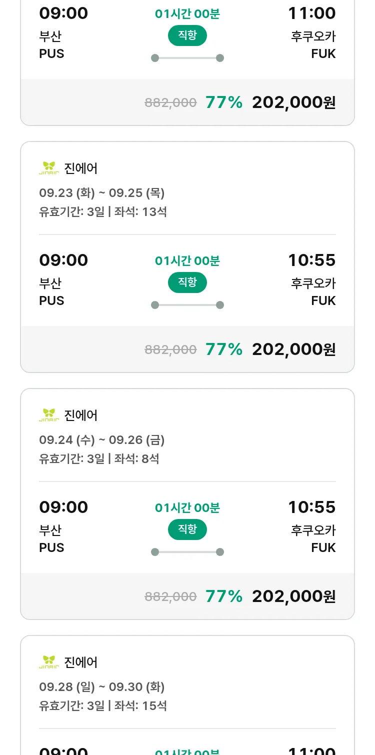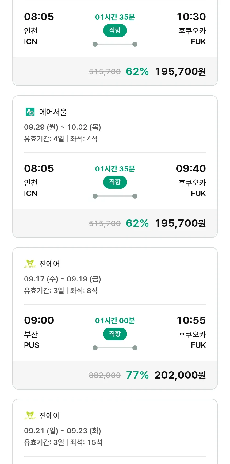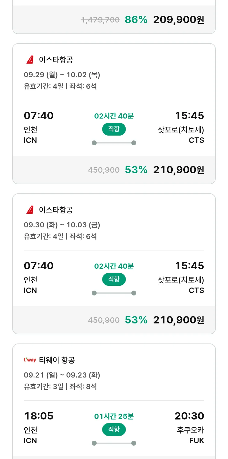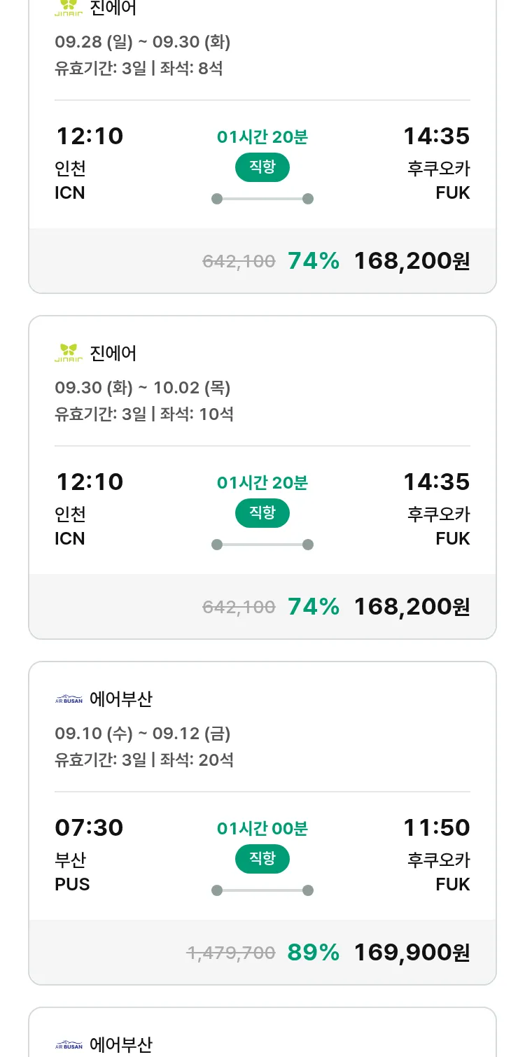 (9월2일(화)) 모두투어 일본 특가 항공권