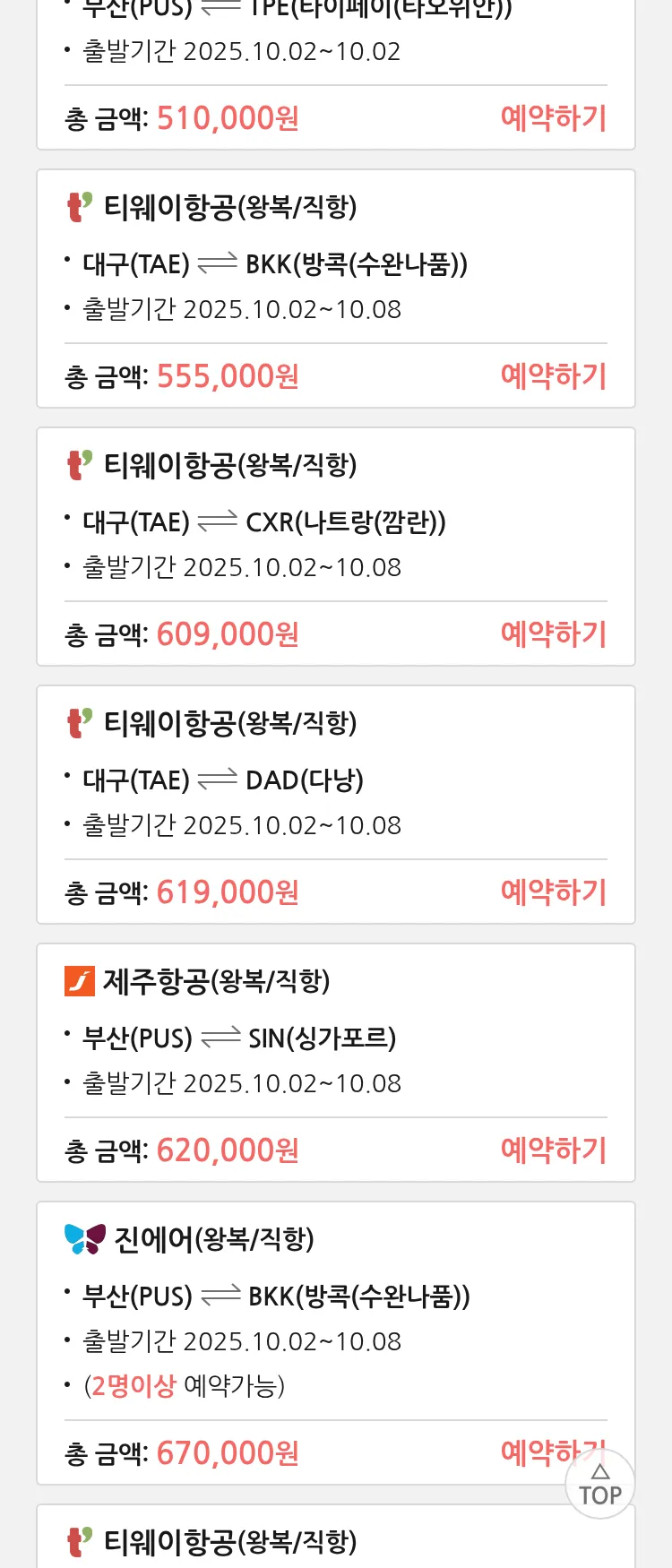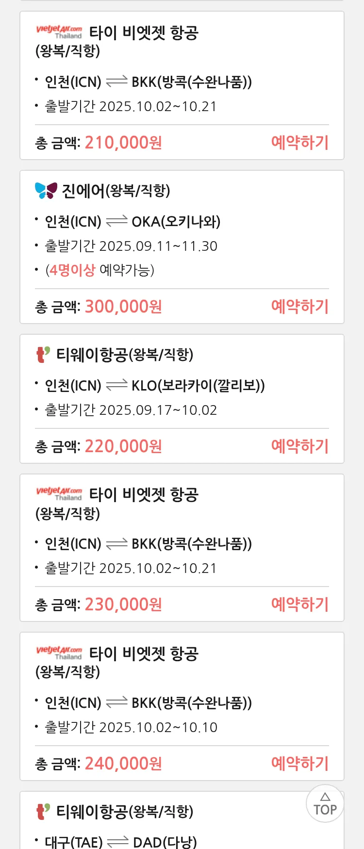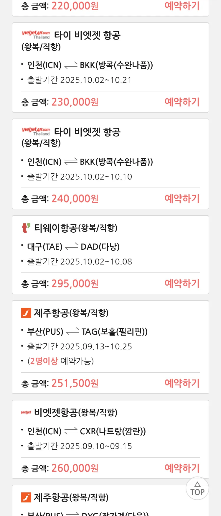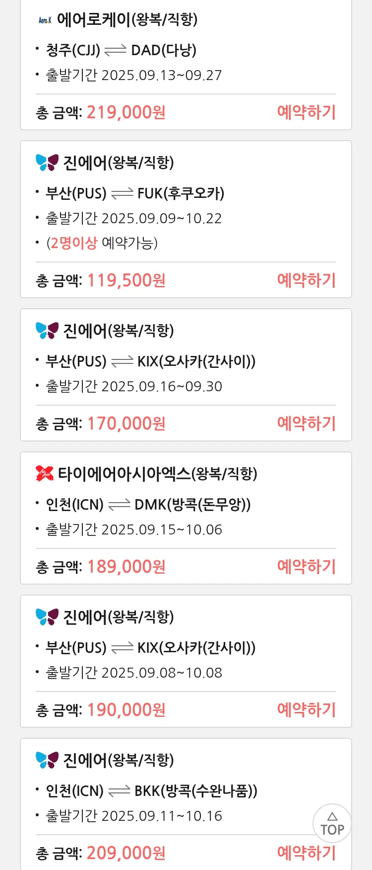 (9월6일(토)) 모두투어 동남아 특가 항공권