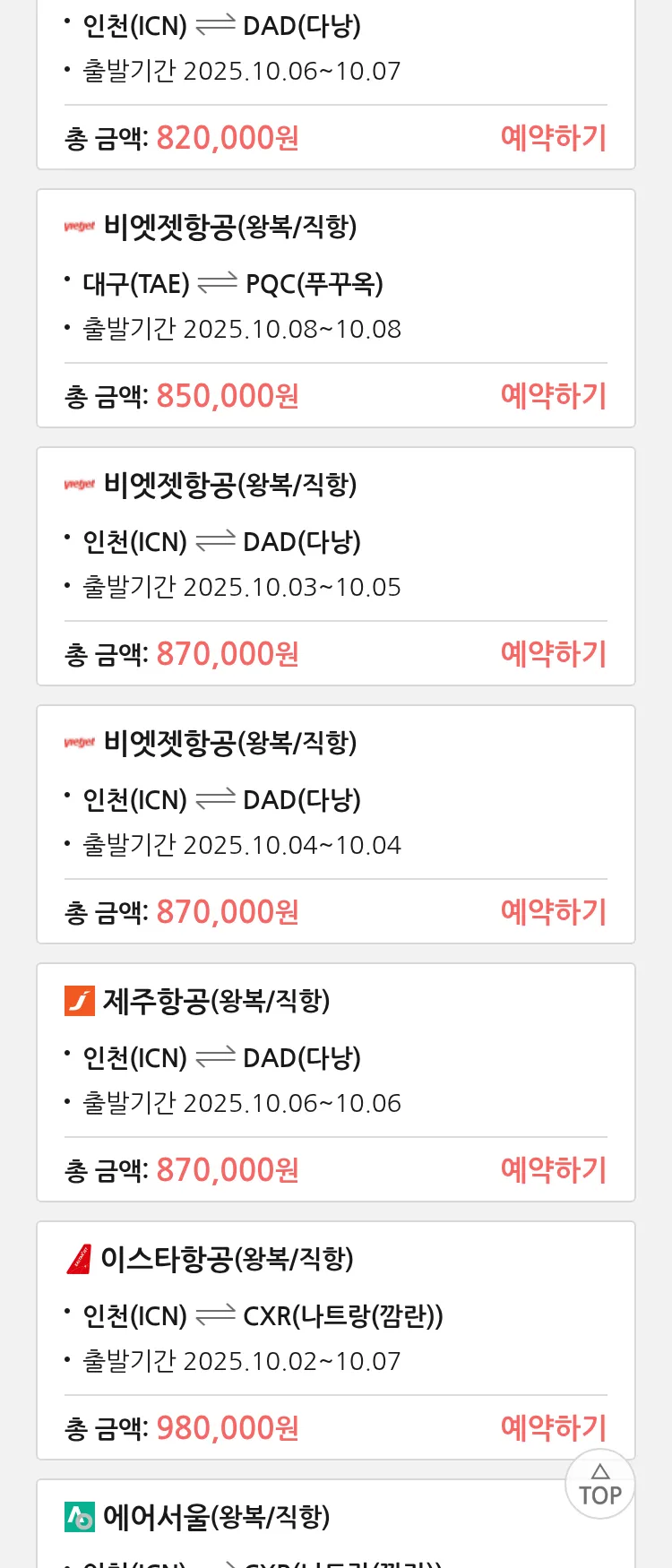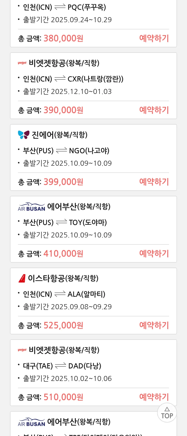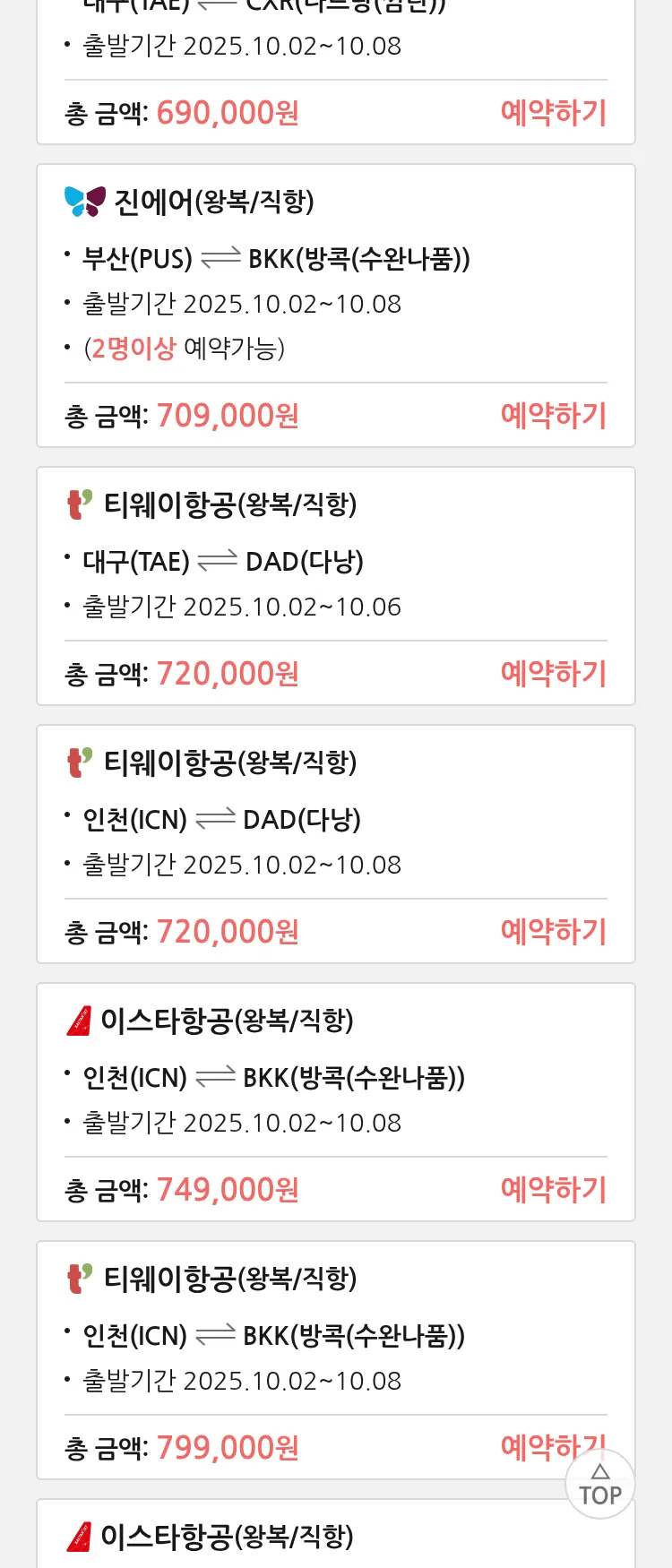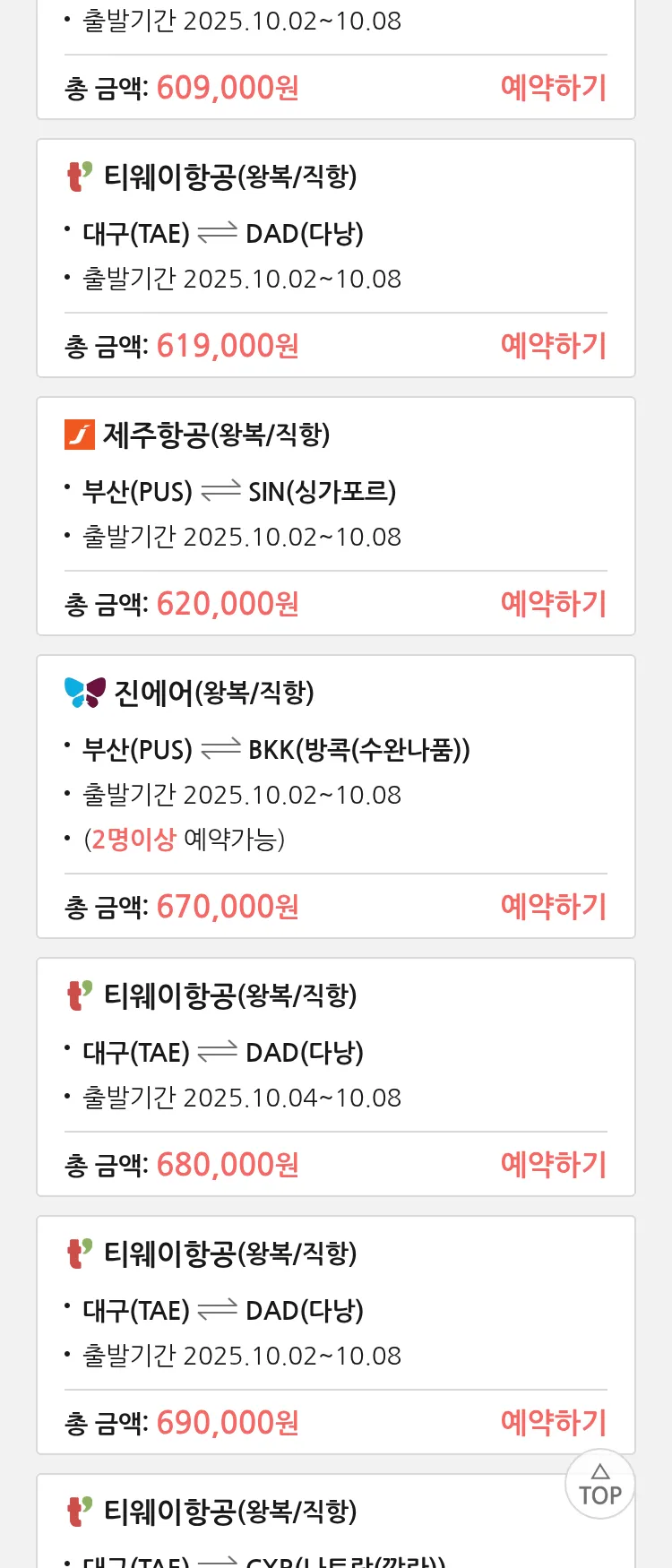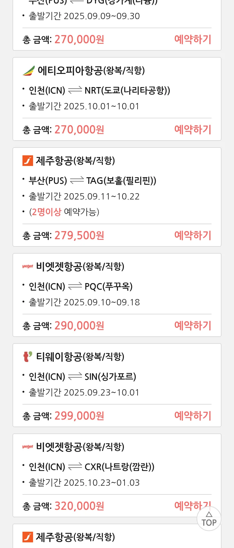 (9월6일(토)) 모두투어 동남아 특가 항공권
