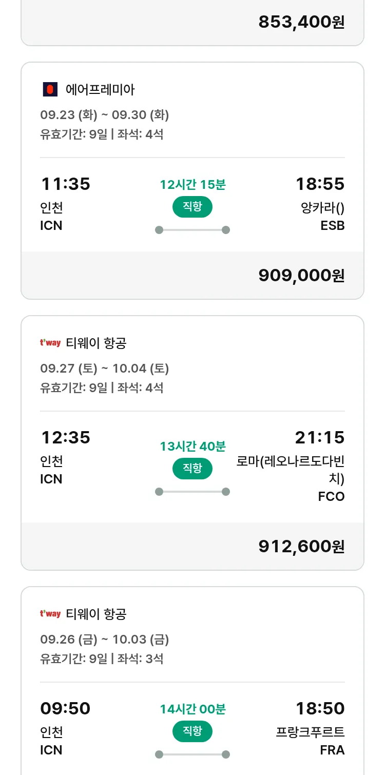 (9월4일(목)) 모두투어 유럽 특가 항공권