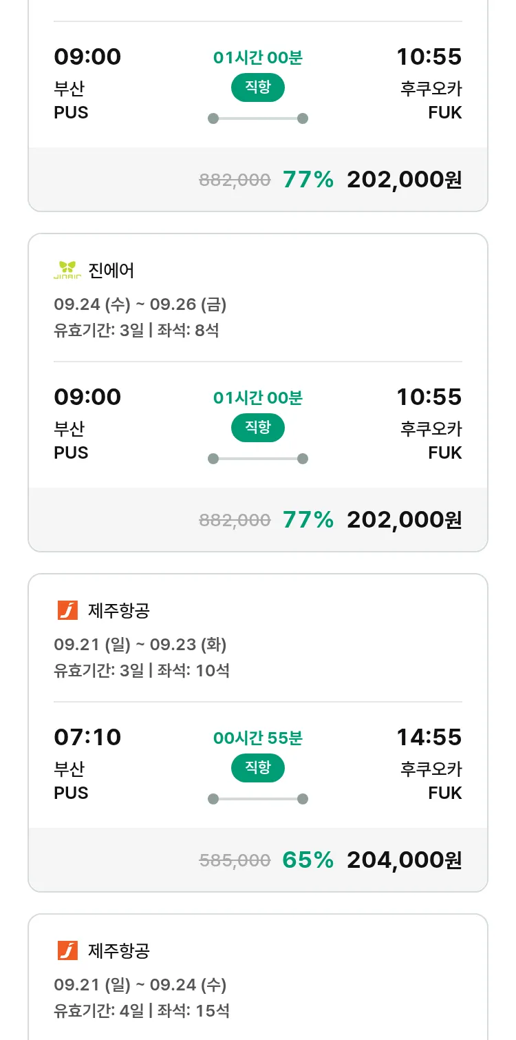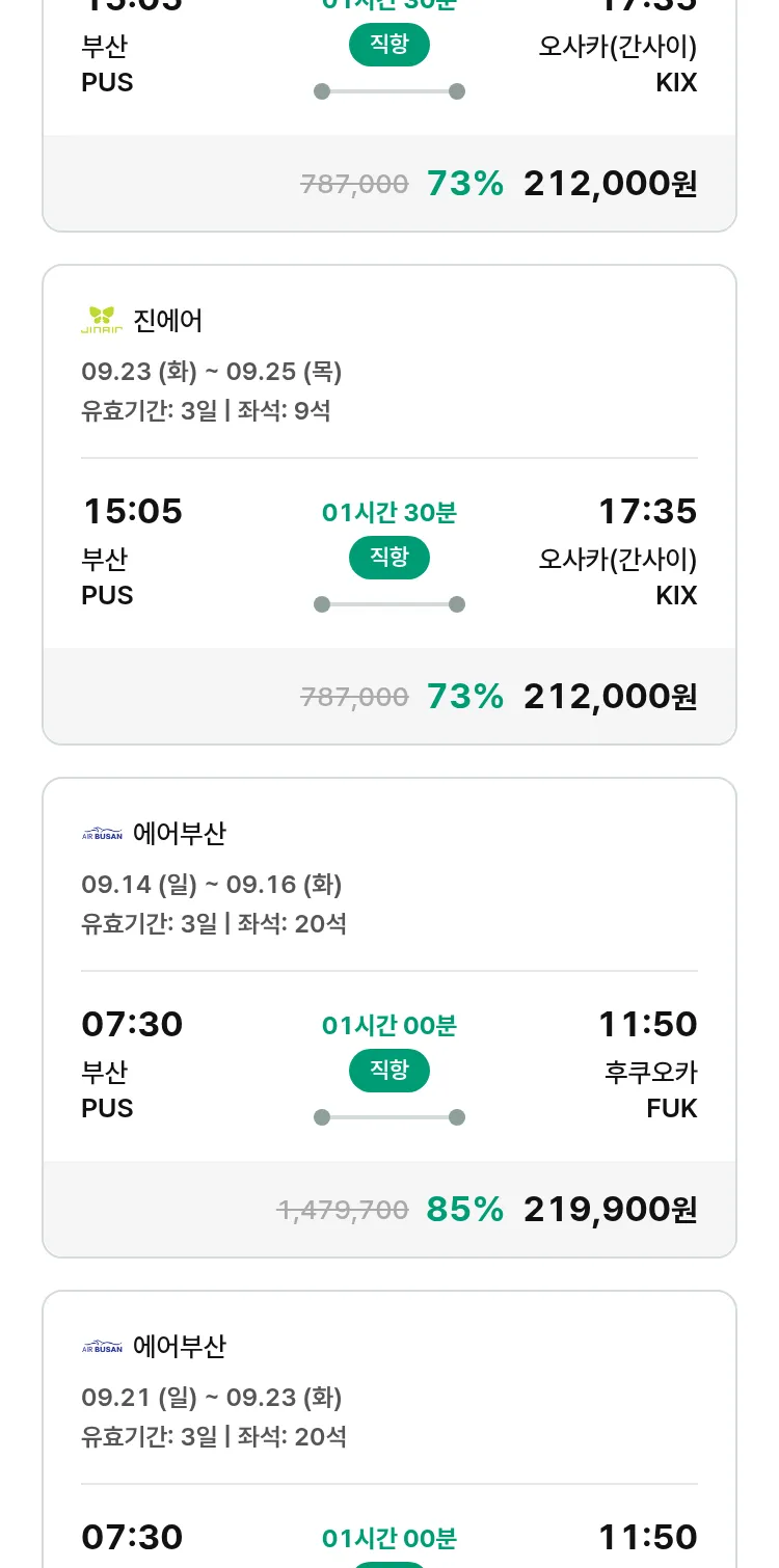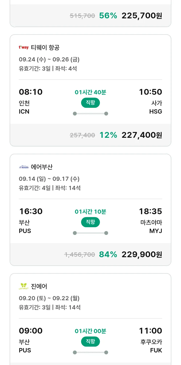 (9월2일(화)) 모두투어 일본 특가 항공권