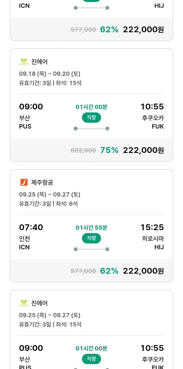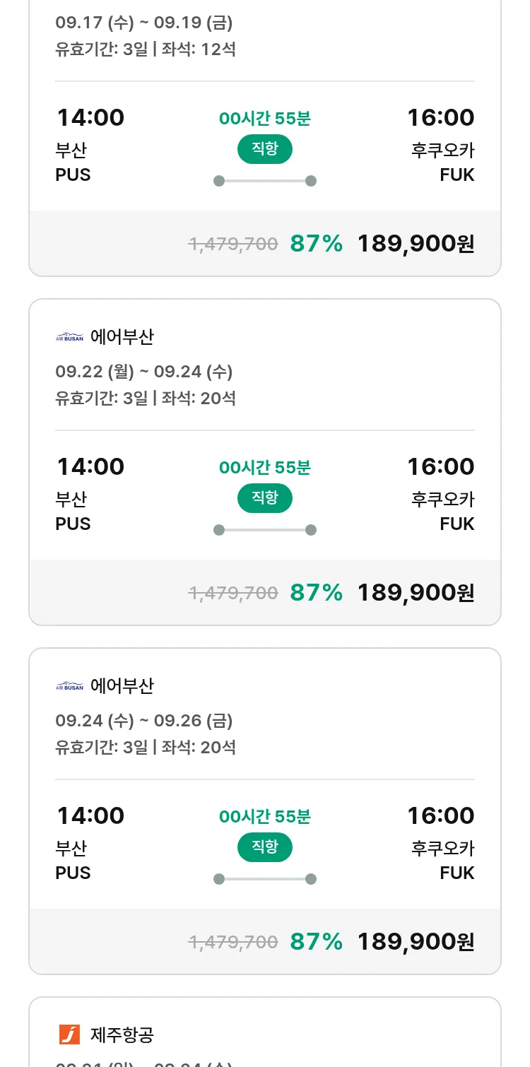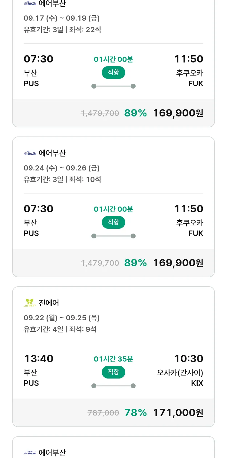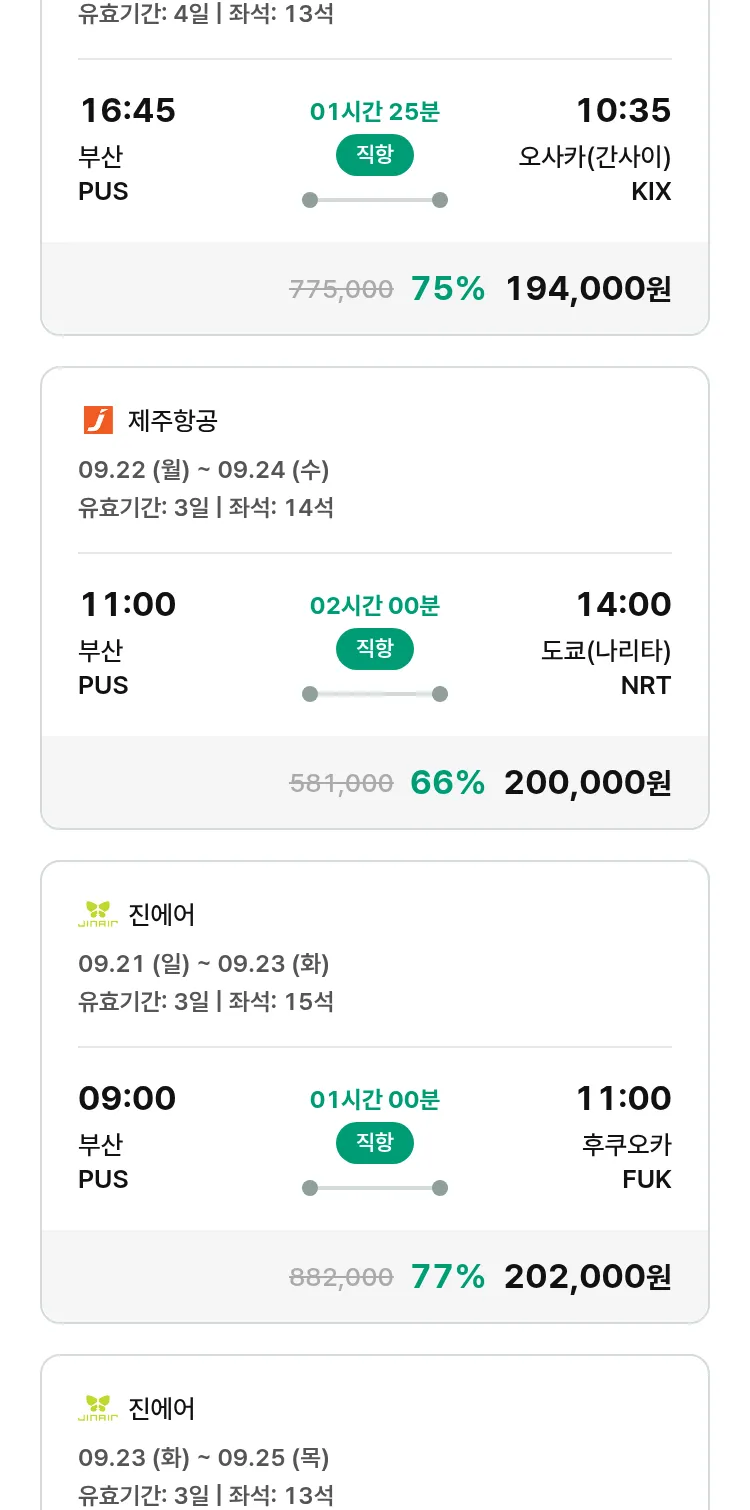 (9월2일(화)) 모두투어 일본 특가 항공권