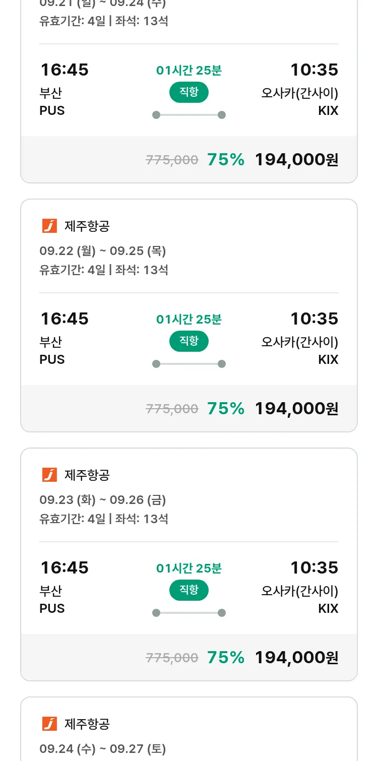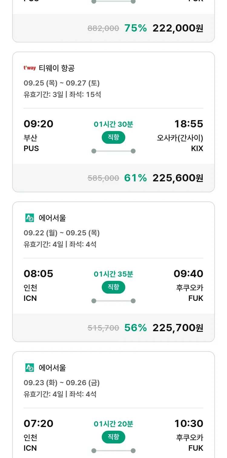 (9월4일(목)) 모두투어 일본 특가 항공권