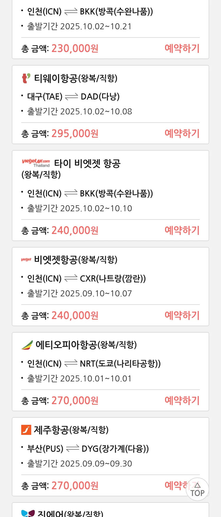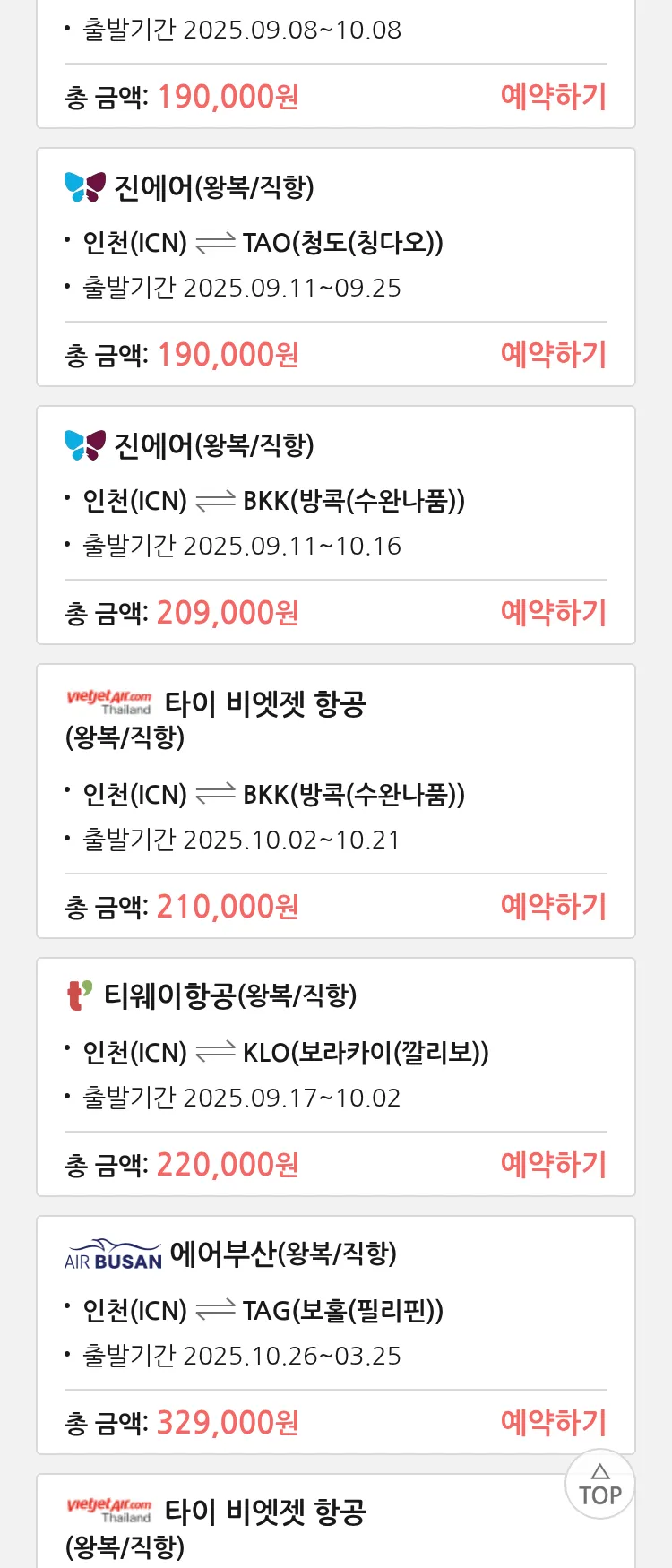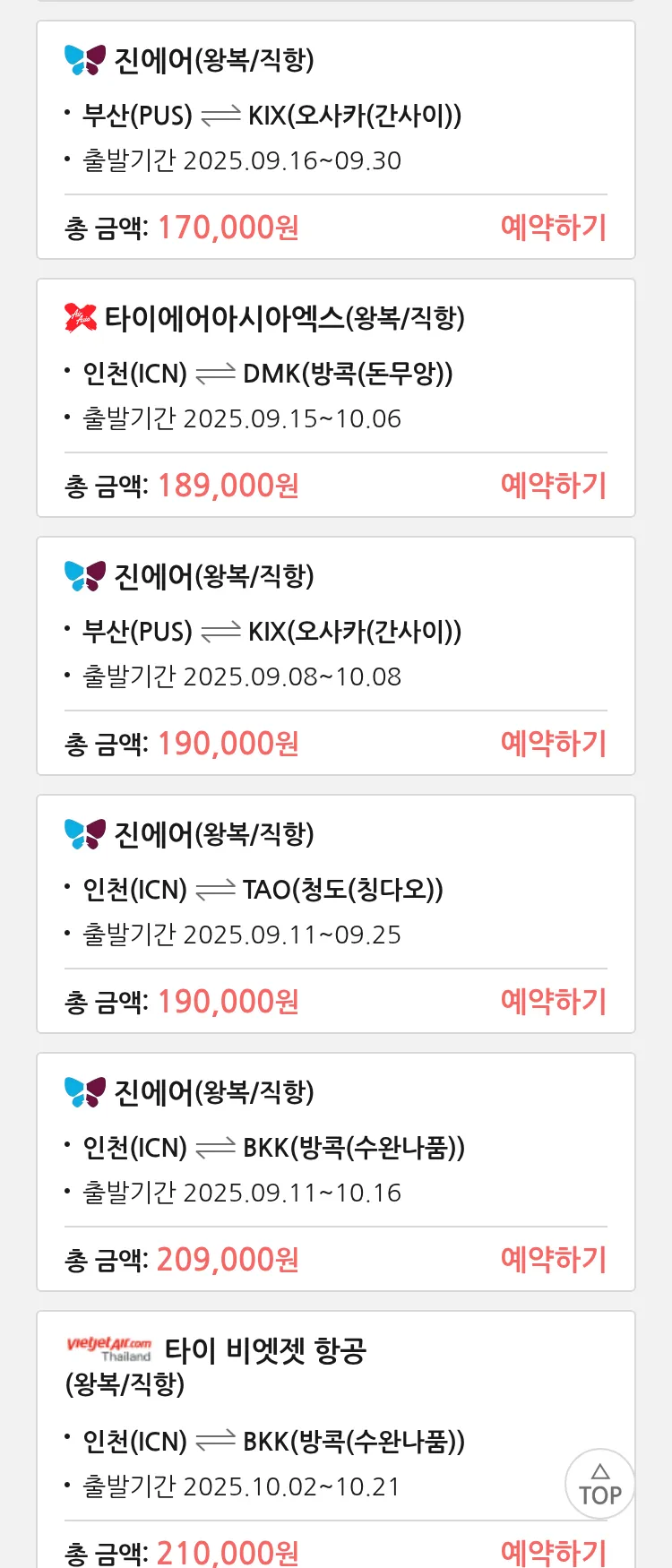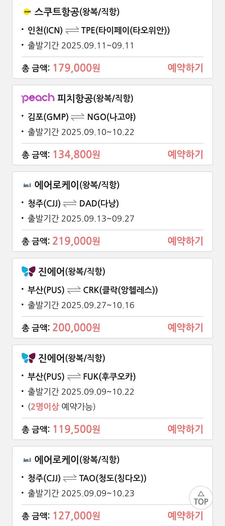 (9월6일(토)) 땡처리 특가 항공권