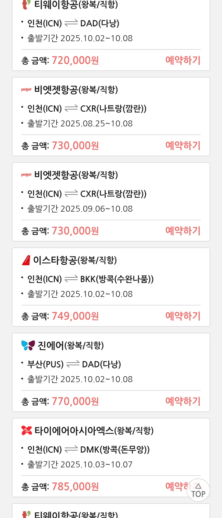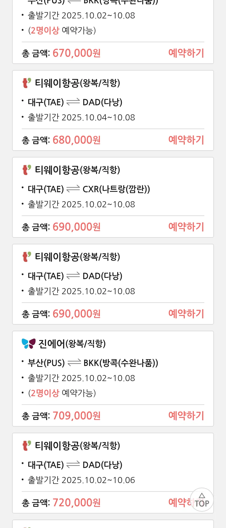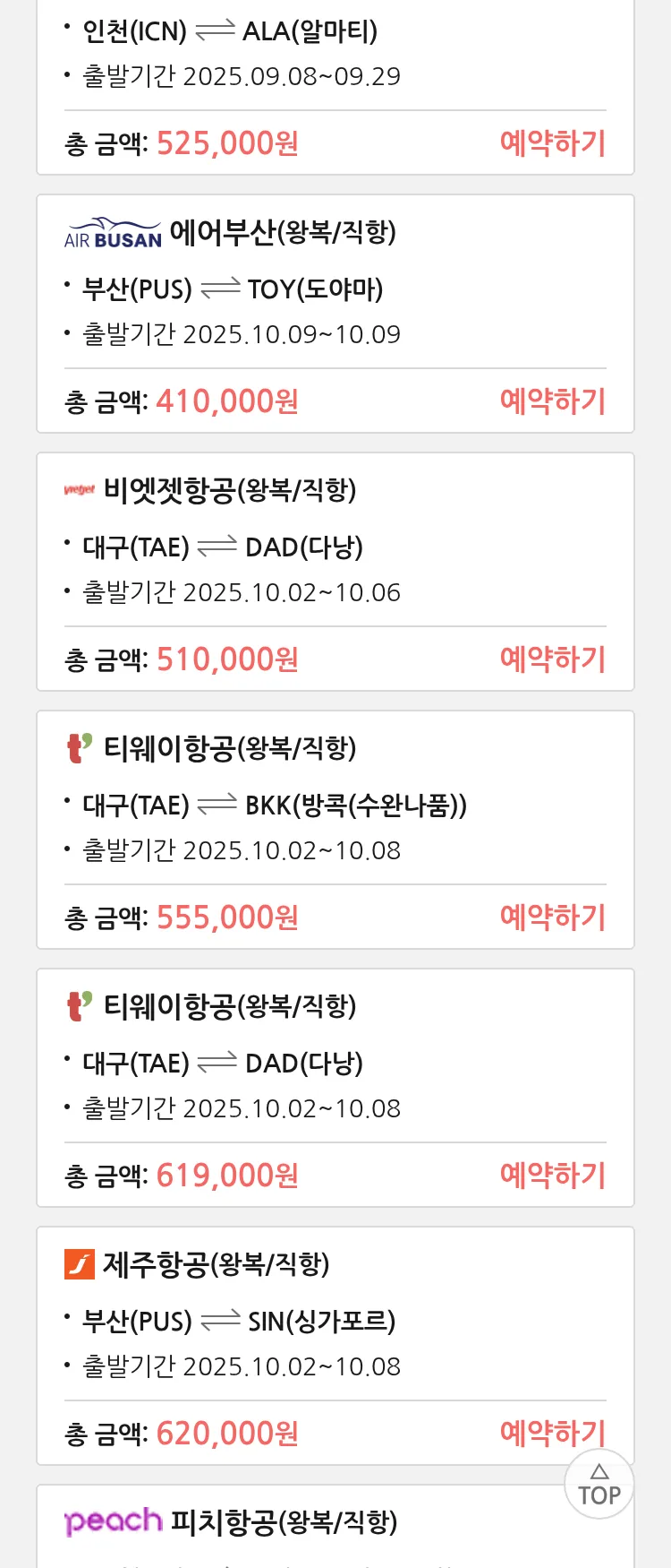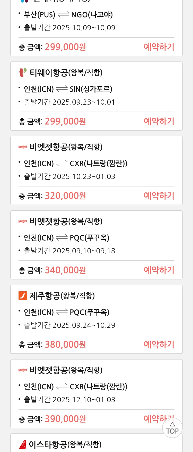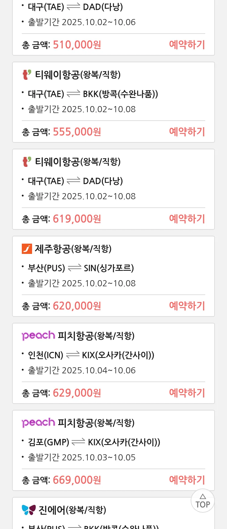 (9월6일(토)) 땡처리 특가 항공권
