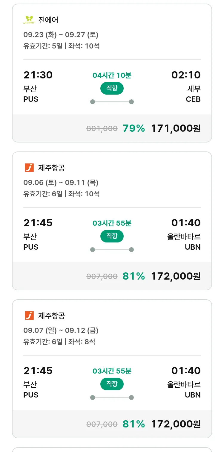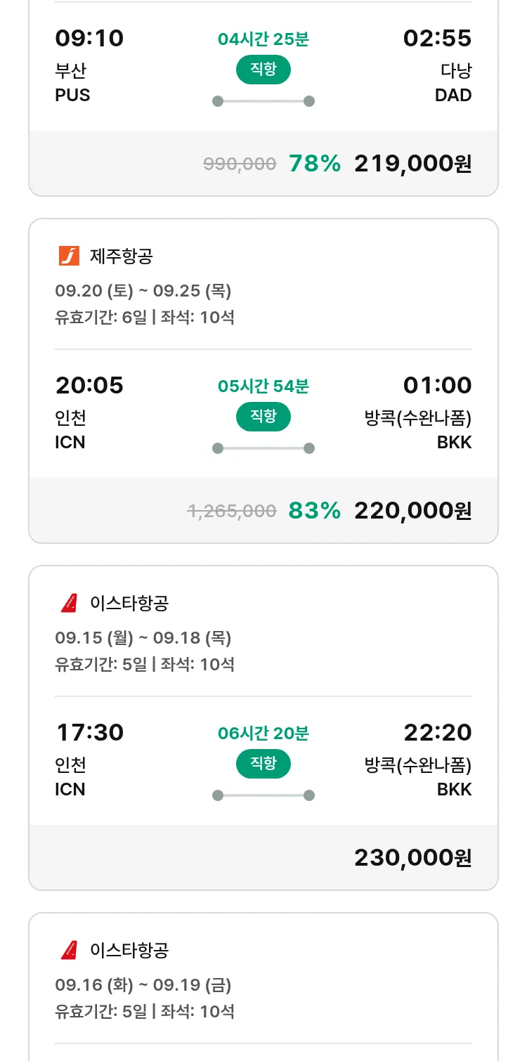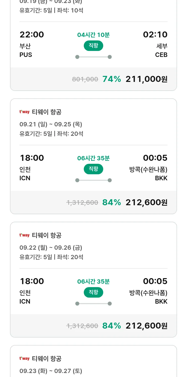 (9월5일(금)) 땡처리 특가 항공권